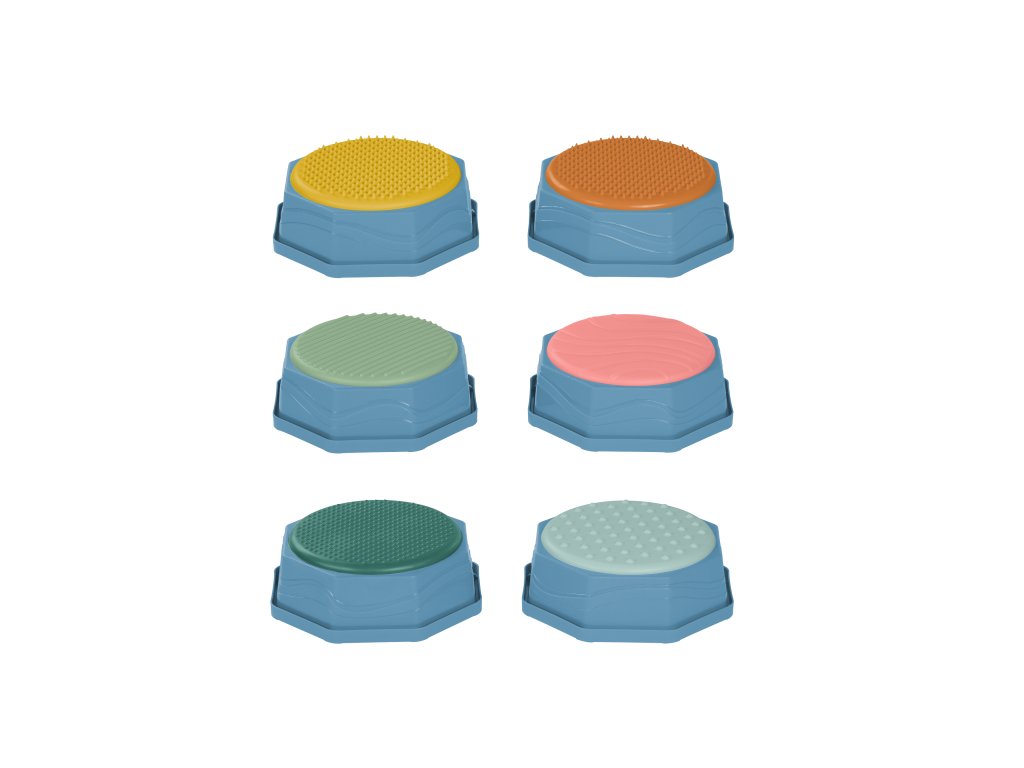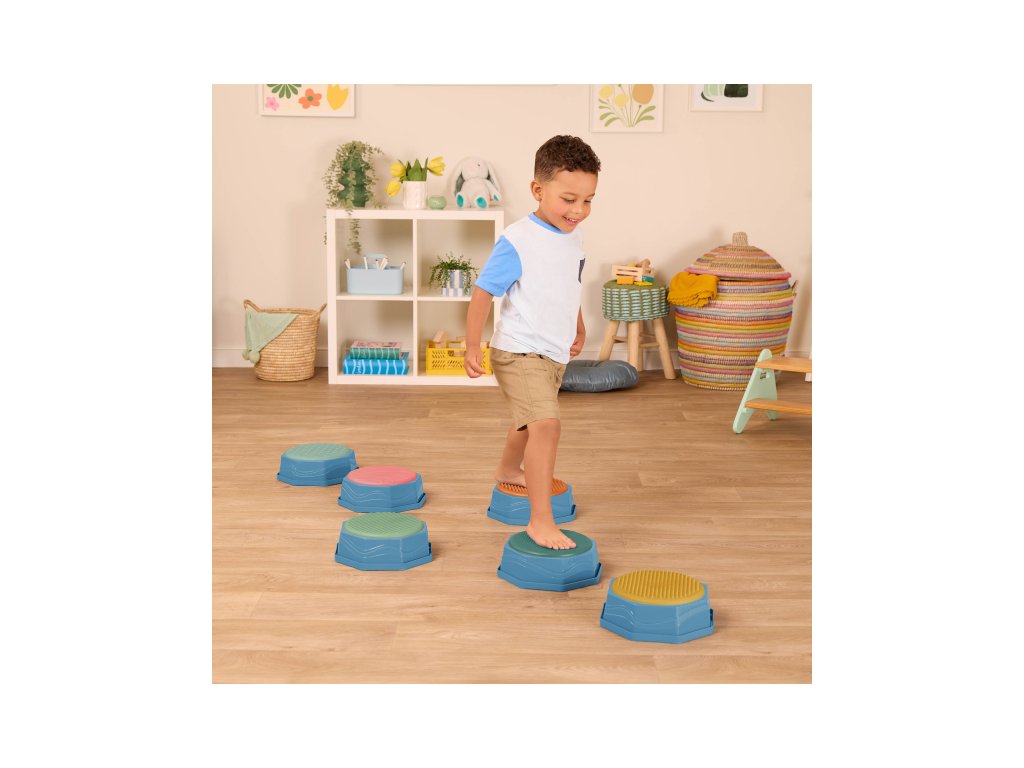 Balanční stupínky Balance & Hop poskytnou vašim dětem zábavu a zároveň pomáhají rozvíjet jejich rovnováhu, koordinaci a hrubou motoriku. Sada obsahující 6 stupínků nabízí mnoho způsobů použití, takže pokaždé můžete vymyslet novou, zajímavou variantu. Každý stupínek má jinou texturu na horní barevné straně.