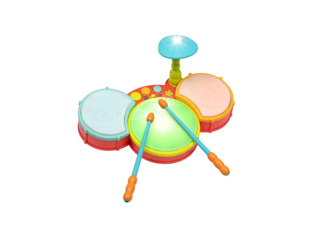 Farebná svietiaca bicia súprava pre malého bubeníka ponúka rôzne spôsoby hrania. Deti môžu bubnovať vo vlastnom rytme alebo podľa toho, ako sa jednotlivé bubienky rozsvecujú. Vlastné bubnovanie môžu doplniť rôznymi druhmi prednahraných zvukov, ktoré bicia súprava ponúka. Rodičia potešia možnosť nastavenia hlasitosti.