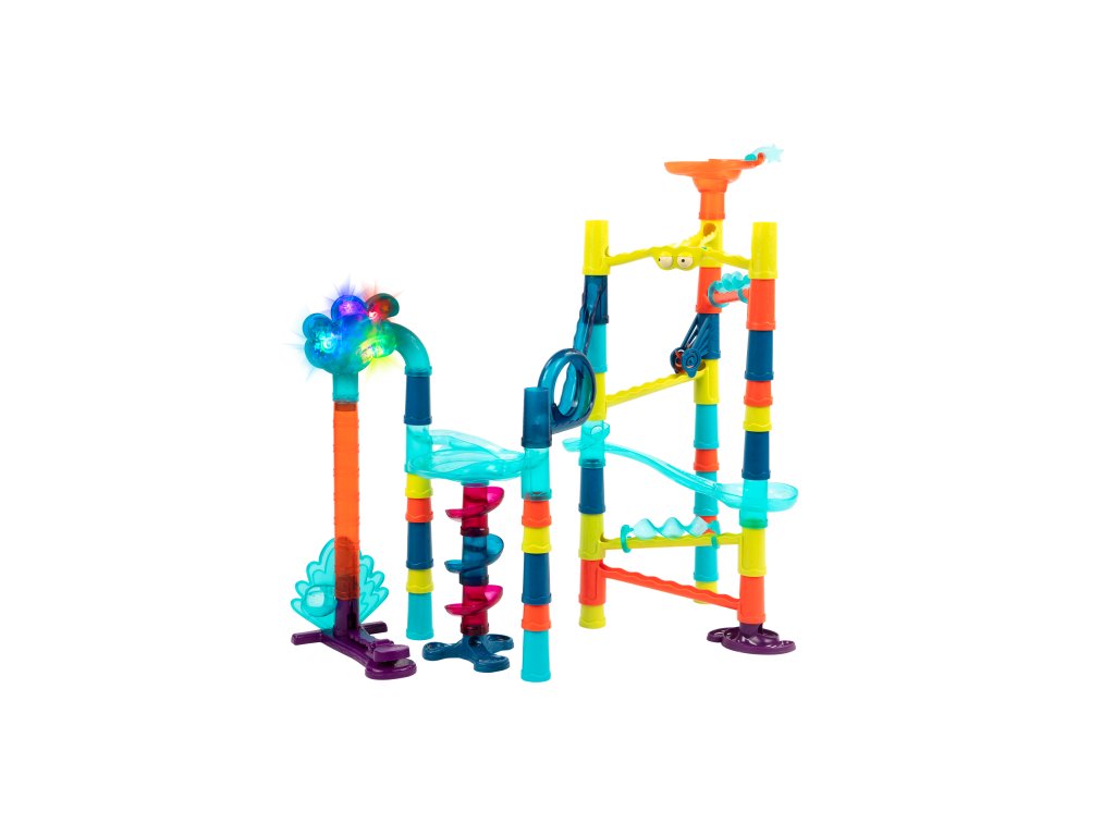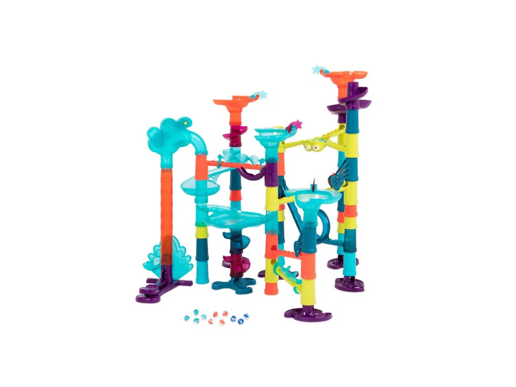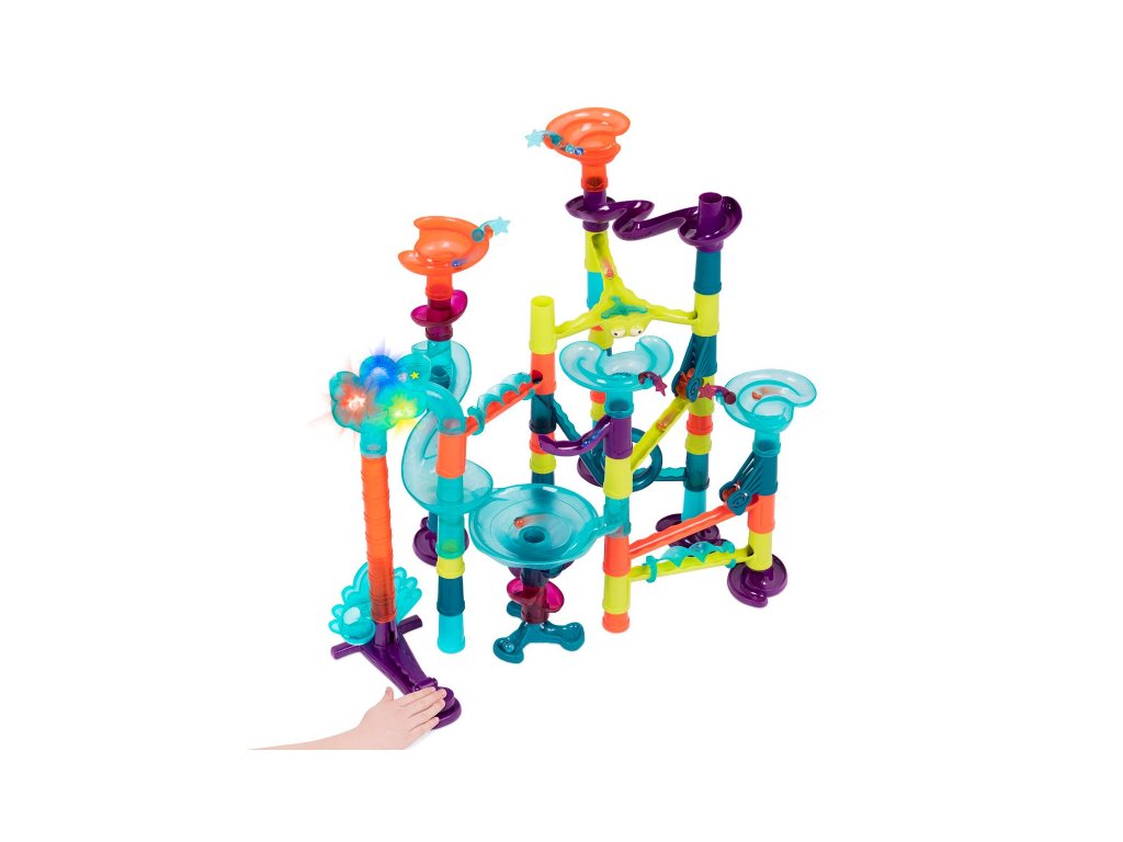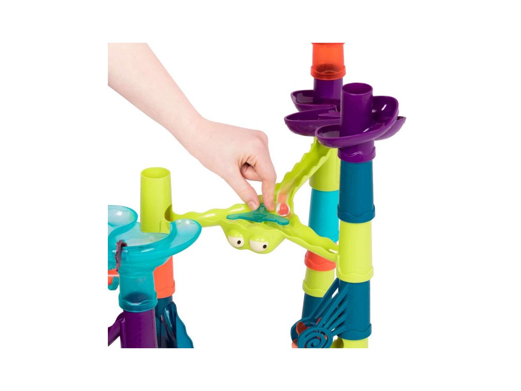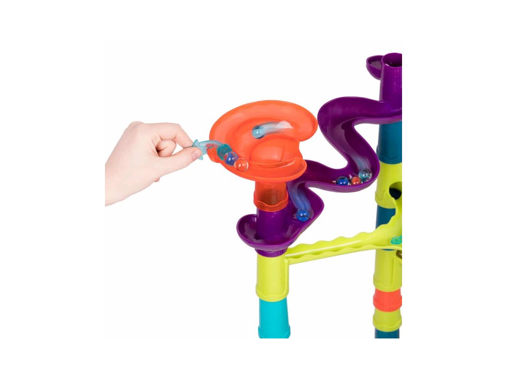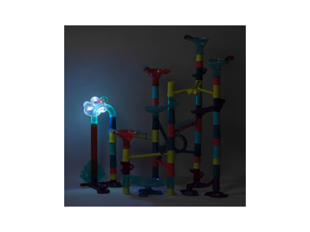 Maxi guľôčková dráha ponúka nekonečnú variabilitu pri stavaní dráhy z farebných, odolných dielov. Postavte spolu s vašimi deťmi dráhu obsahujúcu vysoké veže, krútiace sa mosty aj rôznorodé pohyblivé časti a potom si užite sledovanie pohybu guličiek celým bludiskom. Pre ešte väčší efekt dráha obsahuje aj diel s farebnými svetielkami.