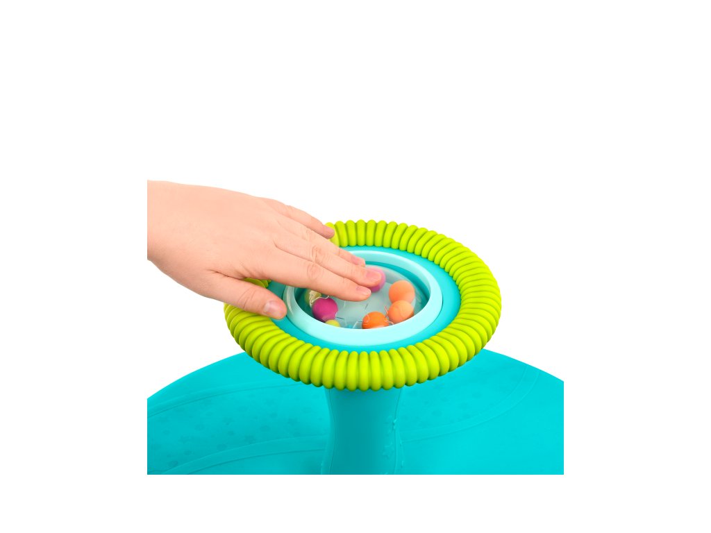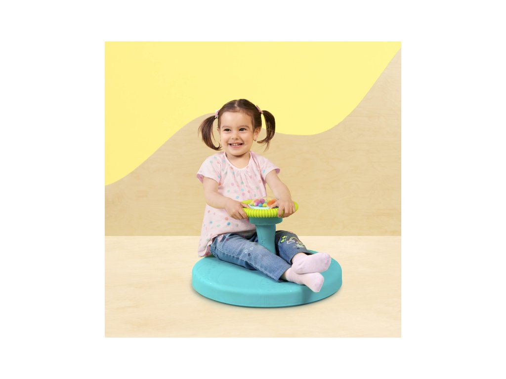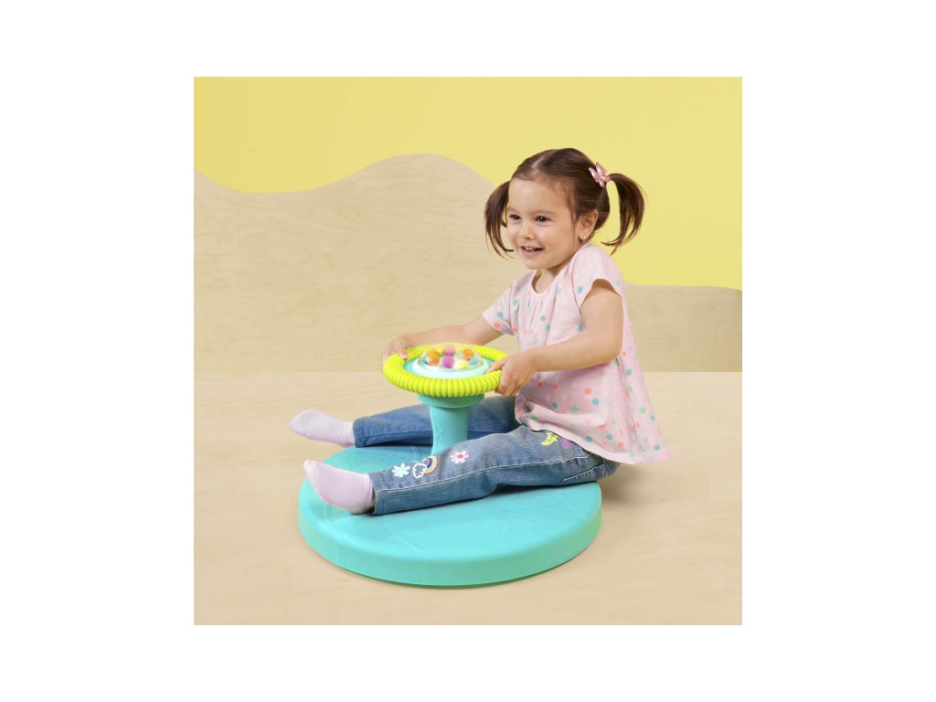 Originálny kolotoč pre batoľatá prinesie veľa zábavy deťom od 2 rokov. Stačí len nasadnúť, uchopiť rukoväť a vďaka otočnej základni sa dieťa ľahko samo dokáže roztočiť. Pre ešte väčšiu zábavu sú uprostred rukoväte farebné guličky, ktoré po stlačení priehľadného krytu veselo poletujú a hrkajú.