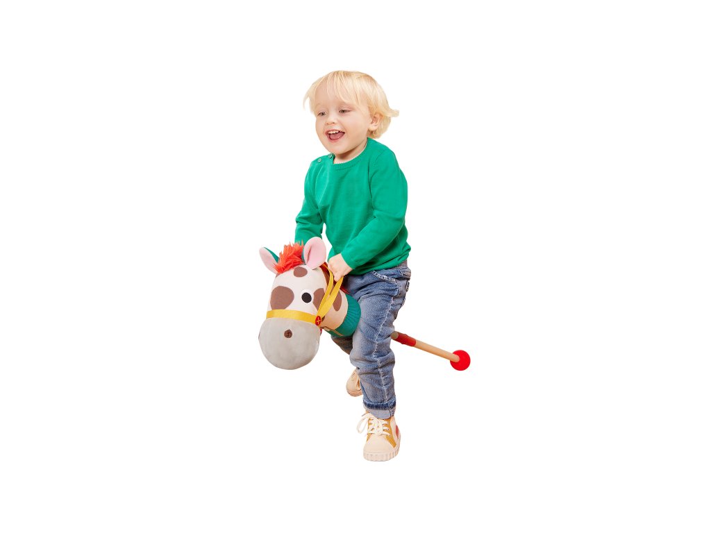 Hurá za dobrodružstvom s rozkošným koníkom Pony Pal od B. Toys! Tento plyšový koník na tyči je modernou verziou klasickej hračky "hobby horse" a zaručí deťom veľa aktívnej zábavy. Hebká hlava z rôznych senzorických materiálov stimuluje hmat konského rehtania. Deti si môžu nasadnúť, pevne chytiť opraty a rozbehnúť sa za dobrodružstvom. Vďaka pogumovanej spodnej časti nezanechá tyč škrabance na podlahe.