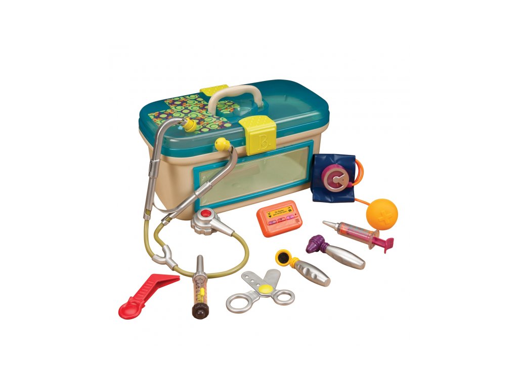 Obľúbená hra na doktora môže začať! Všetko, čo malý lekár alebo lekárka potrebujú, nájdu v pevnom kufríku Btoys s uchom na prenášanie. Kufrík obsahuje otoskopy, teplomer, stetoskop so zvukom tlkotu srdca, tlakomer, pinzetu, zrkadielko, striekačku, bezpečné nožnice a pípatko.