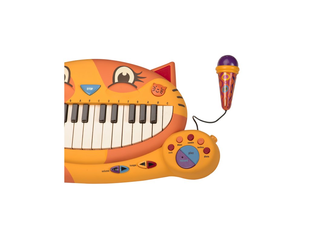 Elektronické piáno Btoys s funkčným mikrofónom pre malých hudobníkov. Možnosť voľby z 5 inštrumentov, 5 rytmov, 20 známych melódií a 7 mačacích pesničiek. Nastavenie hlasitosti a tempa. Funkcia nahrania vlastnej melódie umožňuje zaznamenať prvé skladateľské pokusy. Mikrofón je možné odpojiť. Vhodné pre deti od 2 do 6 rokov.