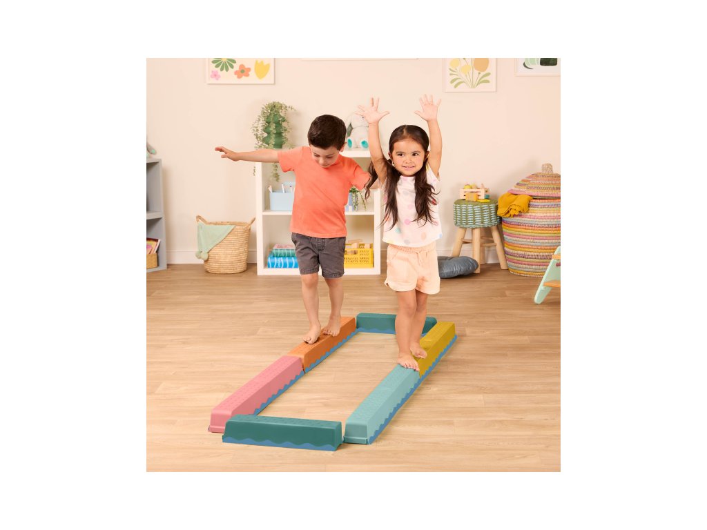 Variabilní překážková dráha Balance & Hop poskytne vašim dětem zábavu a zároveň pomáhá rozvíjet jejich rovnováhu, koordinaci a hrubou motoriku. Sada obsahující 10 překážek nabízí mnoho kombinací a způsobů použití, takže pokaždé můžete vymyslet novou, zajímavou variantu.