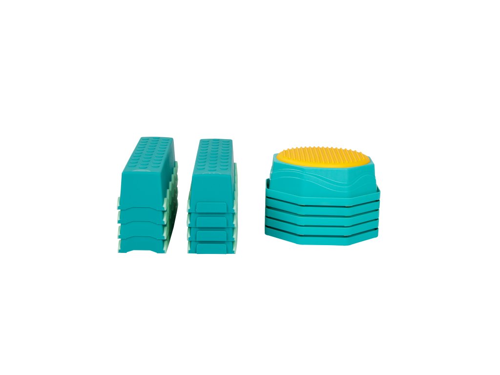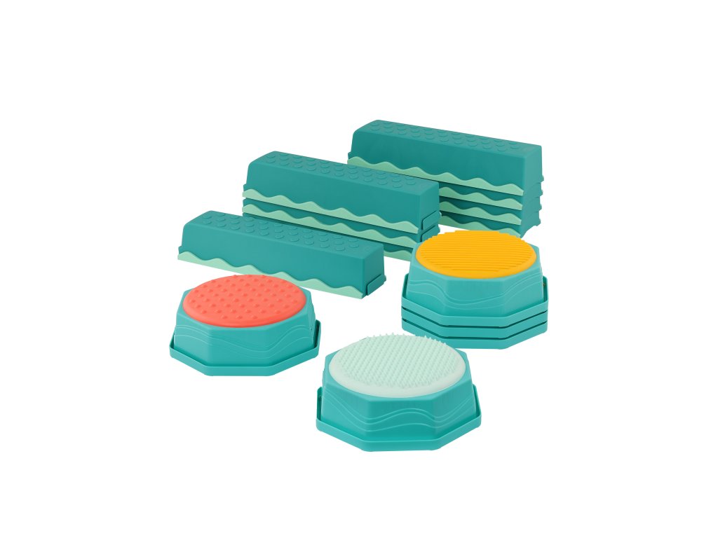 Variabilná prekážková dráha posktne vašim deťom zábavu a zároveň pomáha rozvíjať ich rovnováhu, koordináciu a hrubú motoriku. Sada obsahujúca 8 rovných a 5 okrúhlych prekážok ponúka mnoho kombinácií a spôsobov použitia, takže zakaždým môžete vymyslieť nový, zaujímavý variant. Každá okrúhla prekážka navyše ponúka inú textúru na hornej farebnej strane.