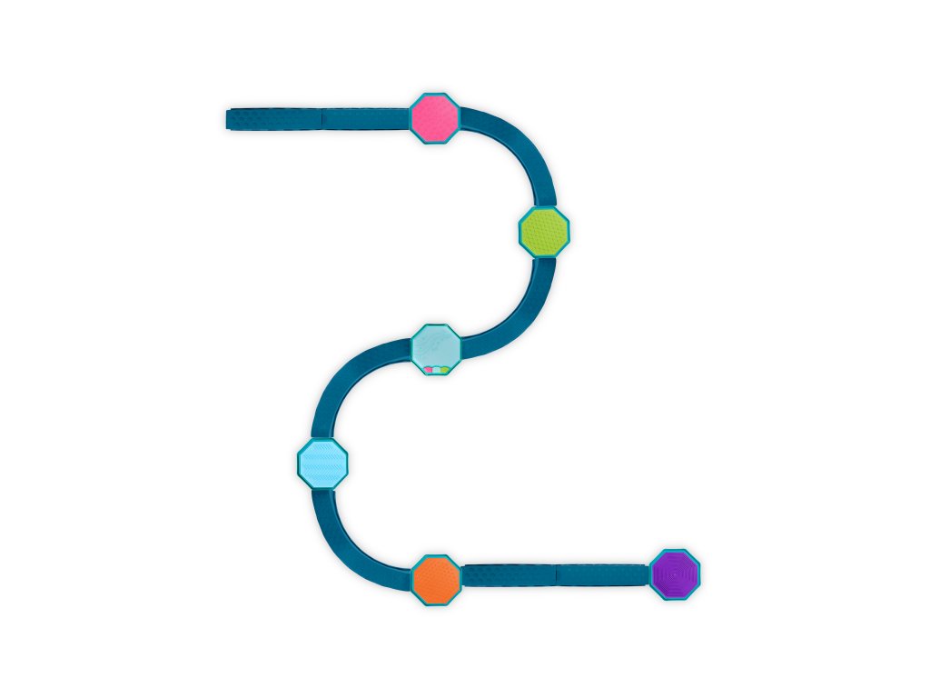 - Modulárna balančná dráha – 4 vlnité prekážky, 4 rovné prekážky a 5 senzorických stupienkov umožňujú nekonečné kombinácie a variabilné stavby