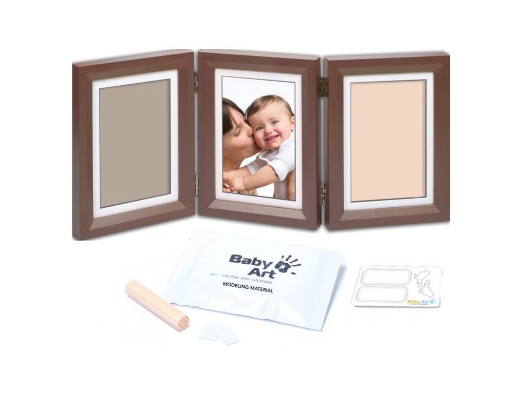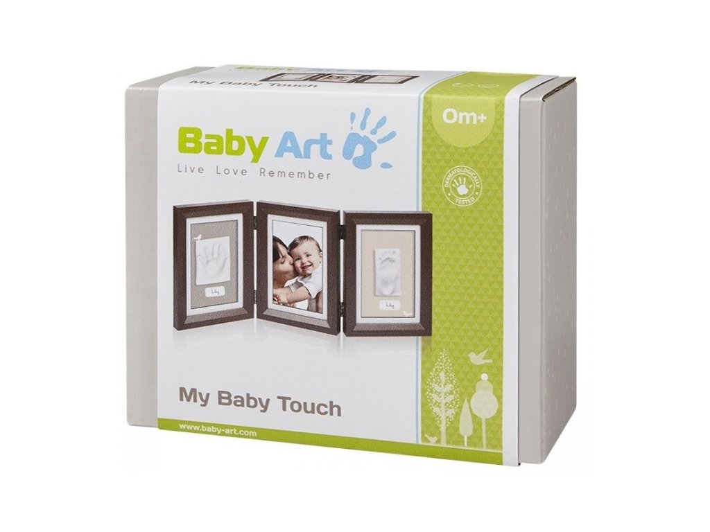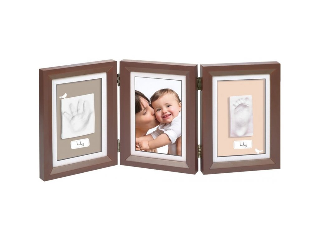 Rámček Baby Art My Baby Touch Double ponúka tri oddelené priestory pre fotografiu a odtlačok ručičky a nožičky Vášho bábätka. Vyrobte si krásnu dekoráciu, ktorá vám zároveň pomôže uchovať spomienky na krásne obdobie po narodení vášho dieťaťa.