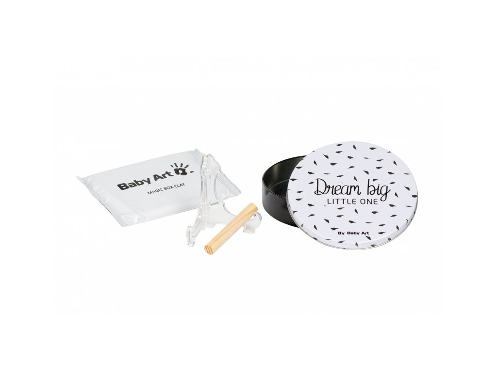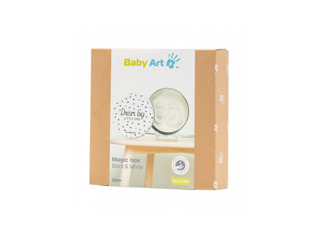 Rámček s vekom a stojanom Baby Art Magic Box ponúka priestor na odtlačok ručičky alebo nožičky vášho bábätka. Vyrobte si krásnu dekoráciu, ktorá vám zároveň pomôže uchovať spomienky na krásne obdobie po narodení vášho dieťaťa.