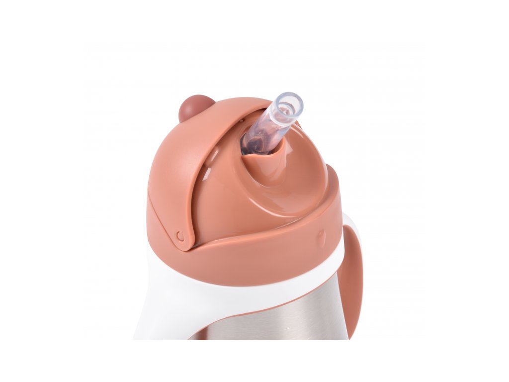 Zaklapávacia silikónová slamka s viečkom je zárukou bezpečného prenášania v taške. Ventil v slamke navyše bráni vyliatiu obsahu fľaštičky pri prevrhnutí aj keď viečko nie je zaklapnuté. Držadlá uľahčujú dieťaťu držanie hrnčeka.