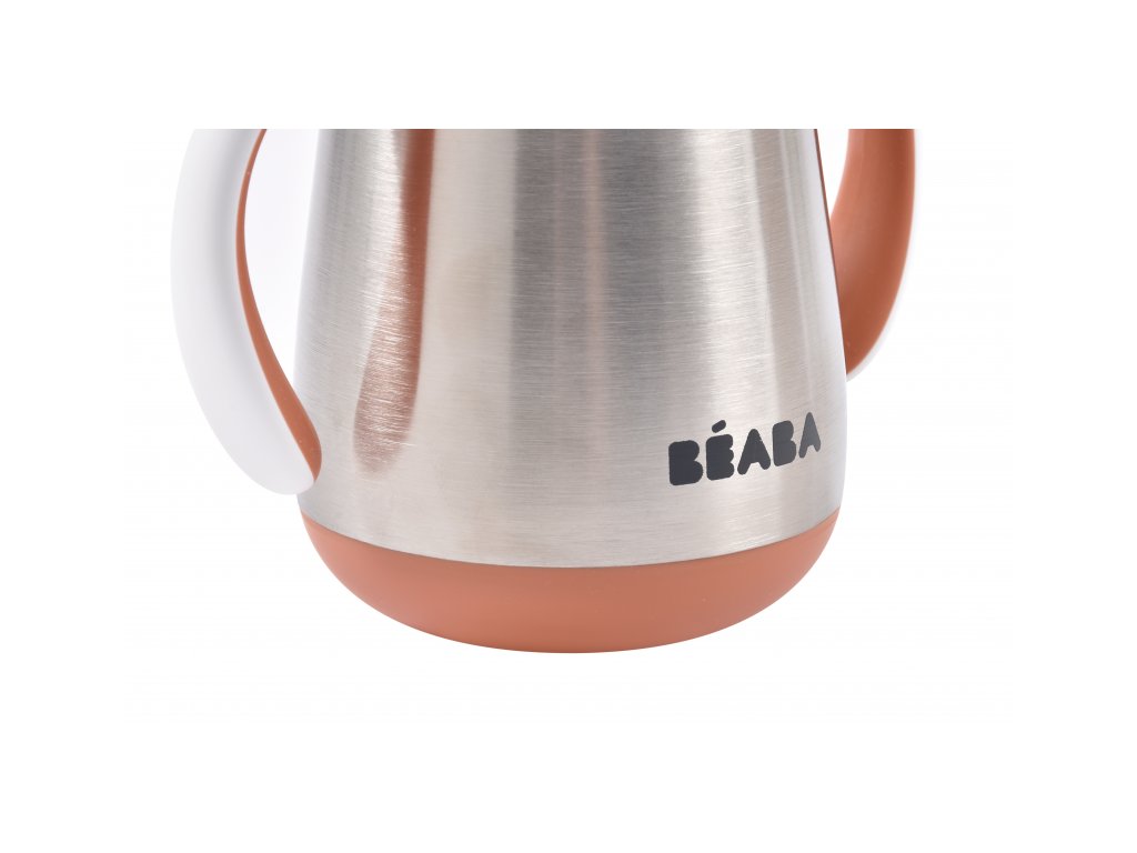 Termoizolačný hrnček Beaba vyrobený z vysoko kvalitnej dvojstennej ocele udrží nápoj až 6 hodín teplý a až 7 hodín studený. Je tak vhodný na zahriatie teplým nápojom počas prechádzok v zime a naopak na osvieženie chladným nápojom počas horúcich letných dní.