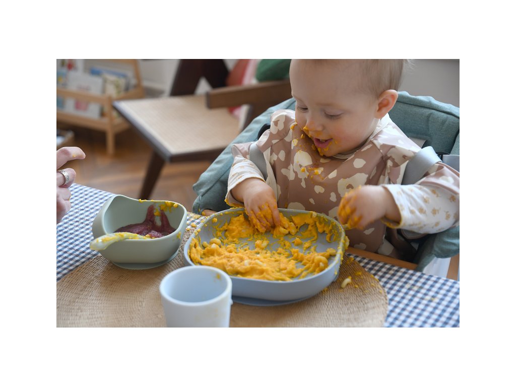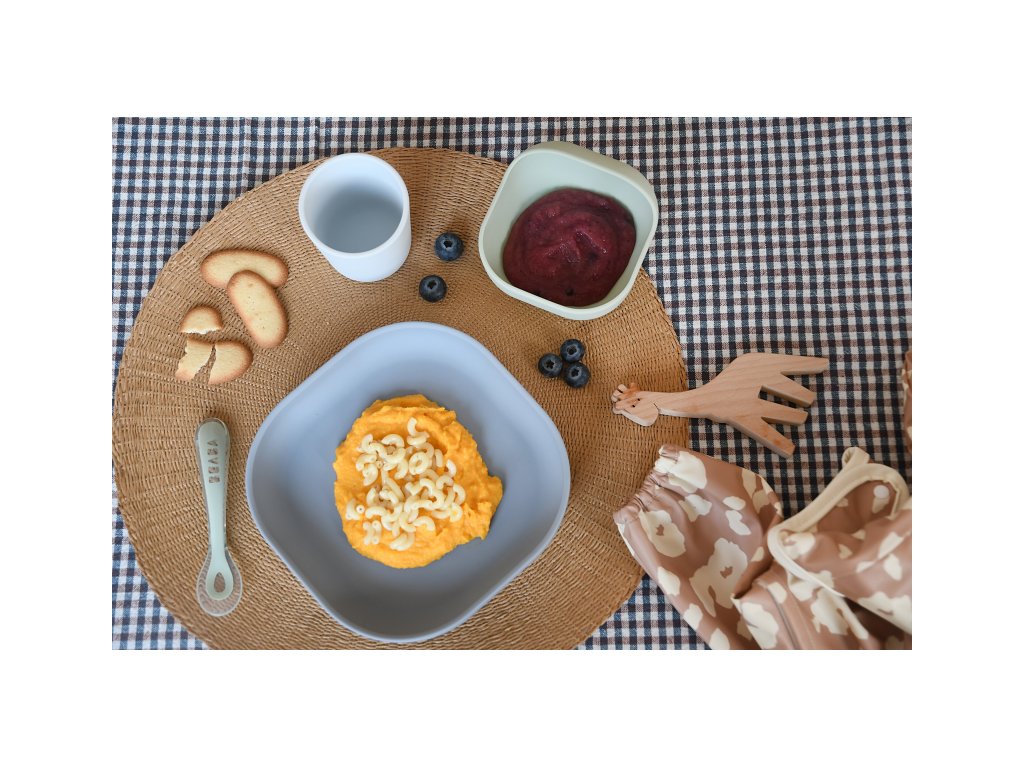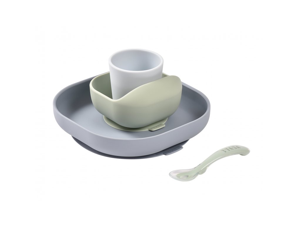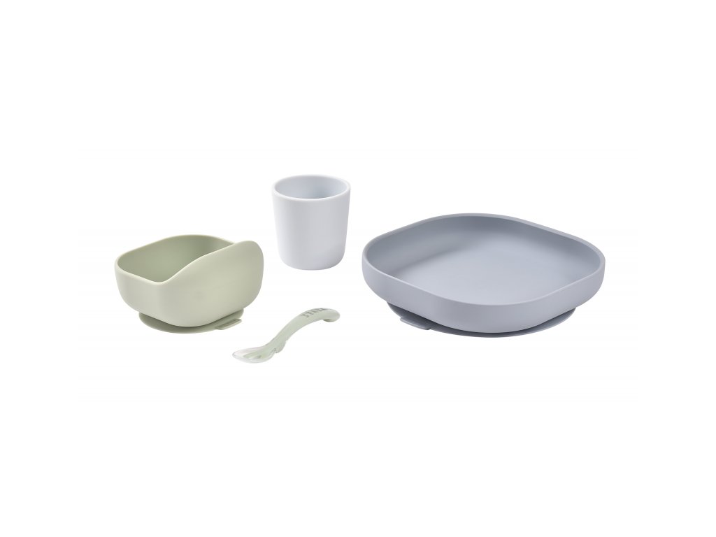 Sada taniera, misky, téglika na pitie a lyžičky z vysoko kvalitného silikónu je ideálna pre prvé samostatné kŕmenie. Prísavka pri miske a tanieri umožňuje uchytenie k stolu alebo pultu jedálenskej stoličky. Ergonomický tvar uľahčuje naberanie príkrmu.