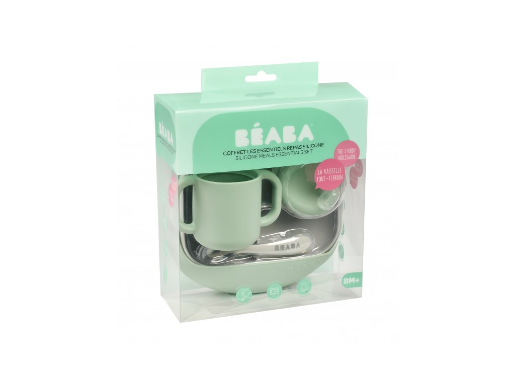 Prísavka pri tanieri umožňuje uchytenie k stolu alebo pultu jedálenskej stoličky, tri priehradky umožňujú oddelené servírovanie jednotlivých súčastí detského pokrmu. Nerozbitný hrnček s dvoma držadlami a odnímateľným viečkom s náustkom je ideálny pre učenie dieťaťa piť samostatne z hrnčeka. V staršom veku dieťaťa hrnček využijete aj ako klasický hrnček bez náustku.