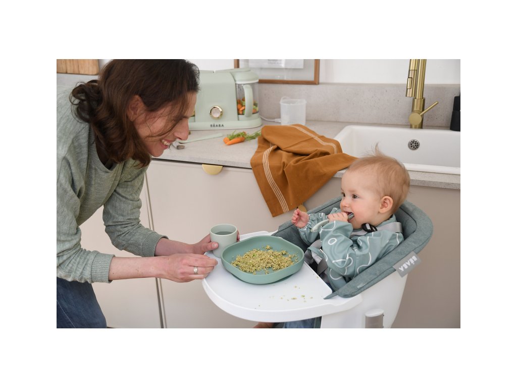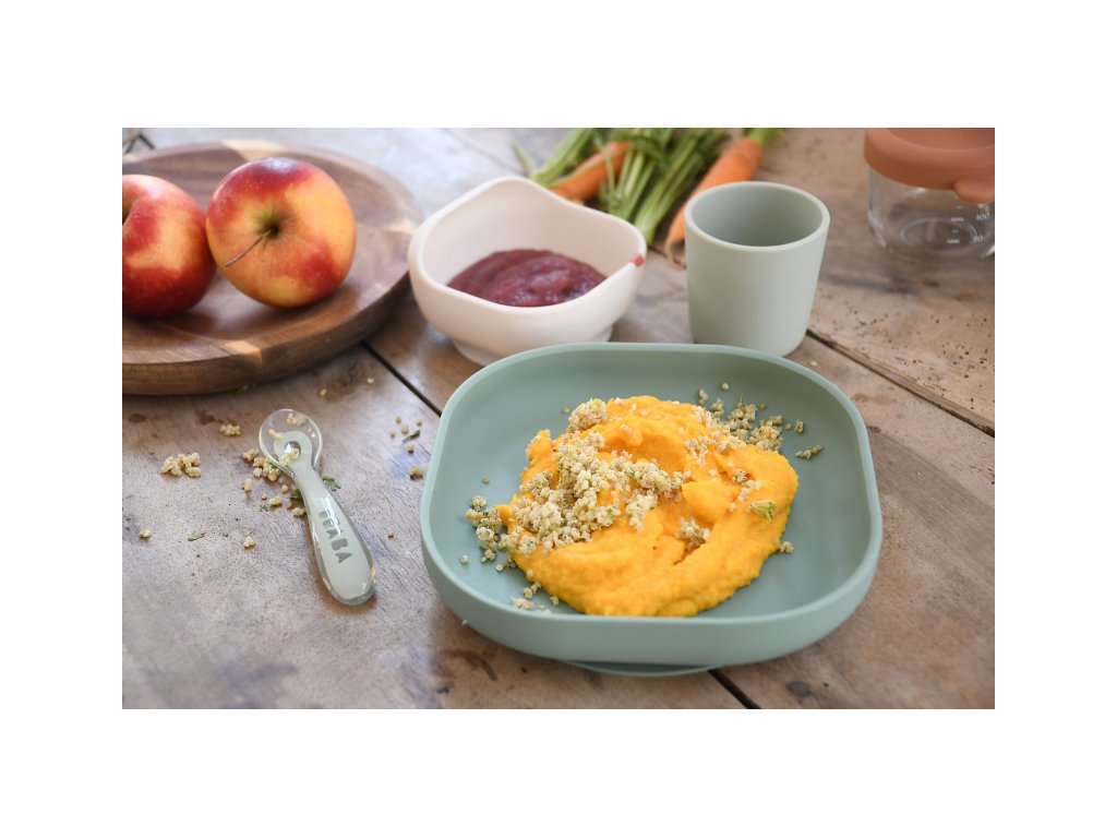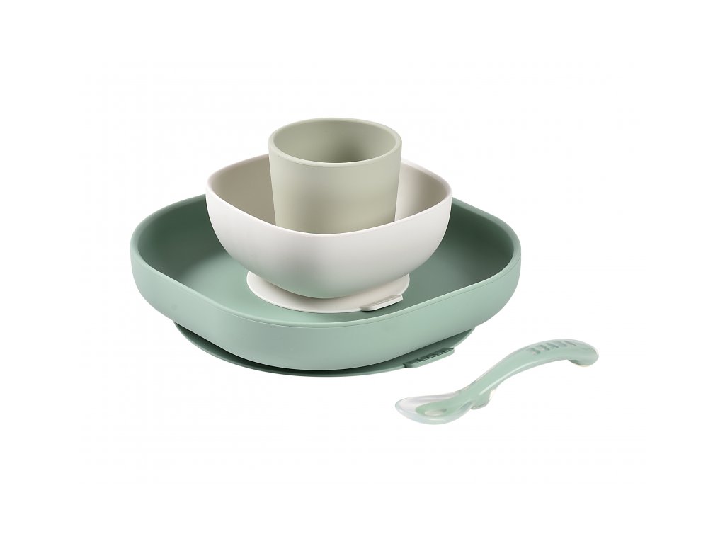Sada taniera, misky, téglika na pitie a lyžičky z vysoko kvalitného silikónu je ideálna pre prvé samostatné kŕmenie. Prísavka pri miske a tanieri umožňuje uchytenie k stolu alebo pultu jedálenskej stoličky. Ergonomický tvar uľahčuje naberanie príkrmu.