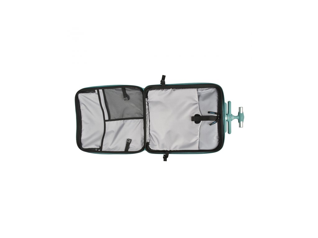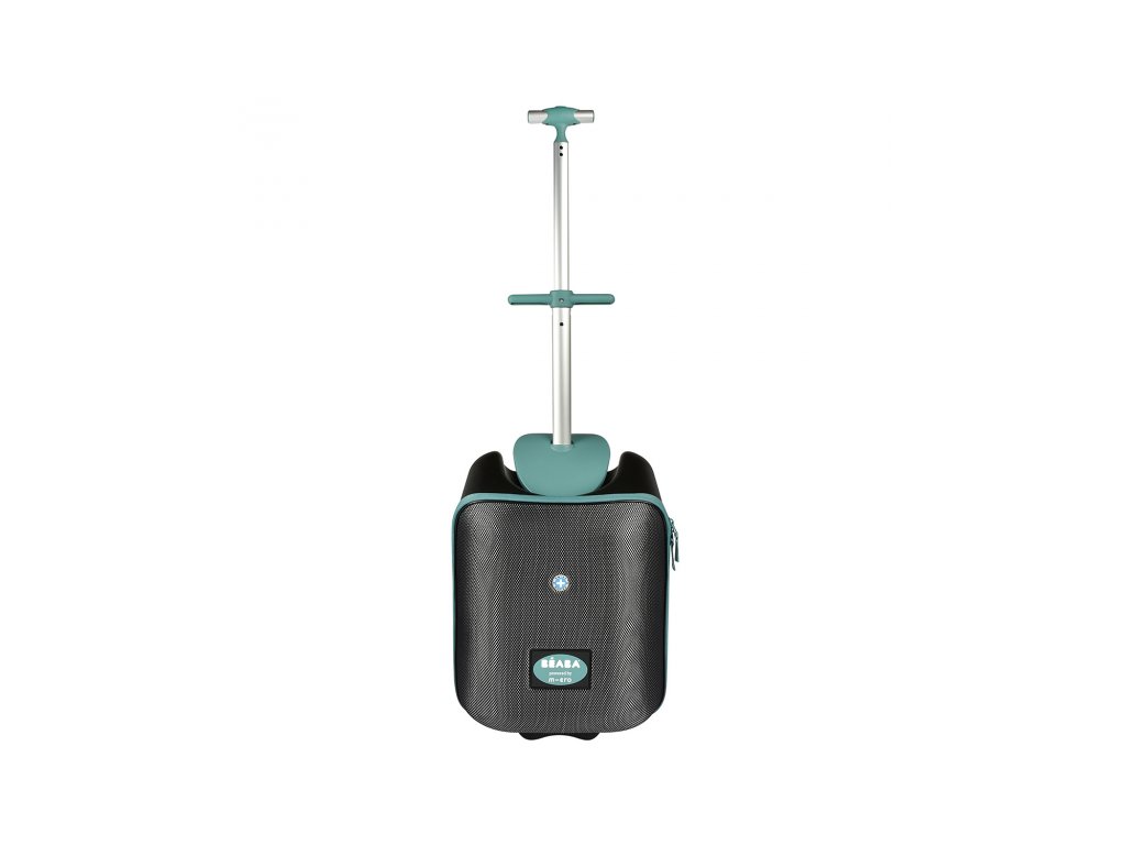 Unikátna kabínová batožina uľahčí a zrýchli vaše cestovanie s malým dieťaťom na letisku, na stanici a pod. Kufor je vybavený sedadlom, na ktorom môžete voziť sediace dieťa. Maximálnu stabilitu pri jazde so sediacim dieťaťom poskytujú vyklápacie oporné nohy s kolieskami. Vyťahovacie držadlo a predné kolieska otočné o 360 ° ponúkajú pohodlné ovládanie kufra.
