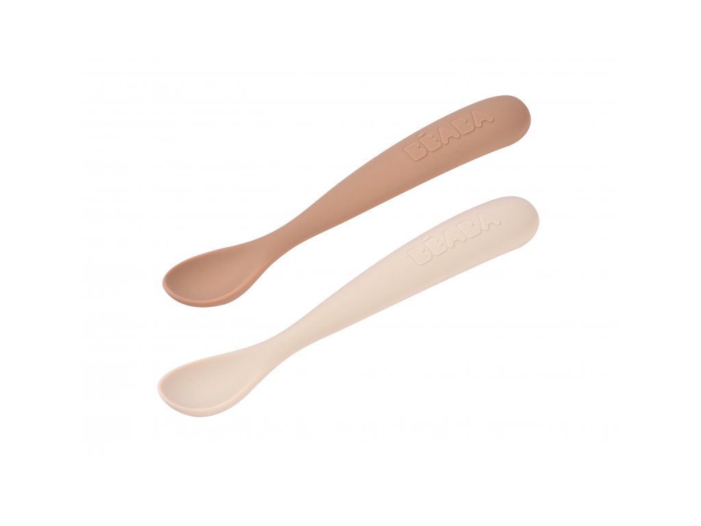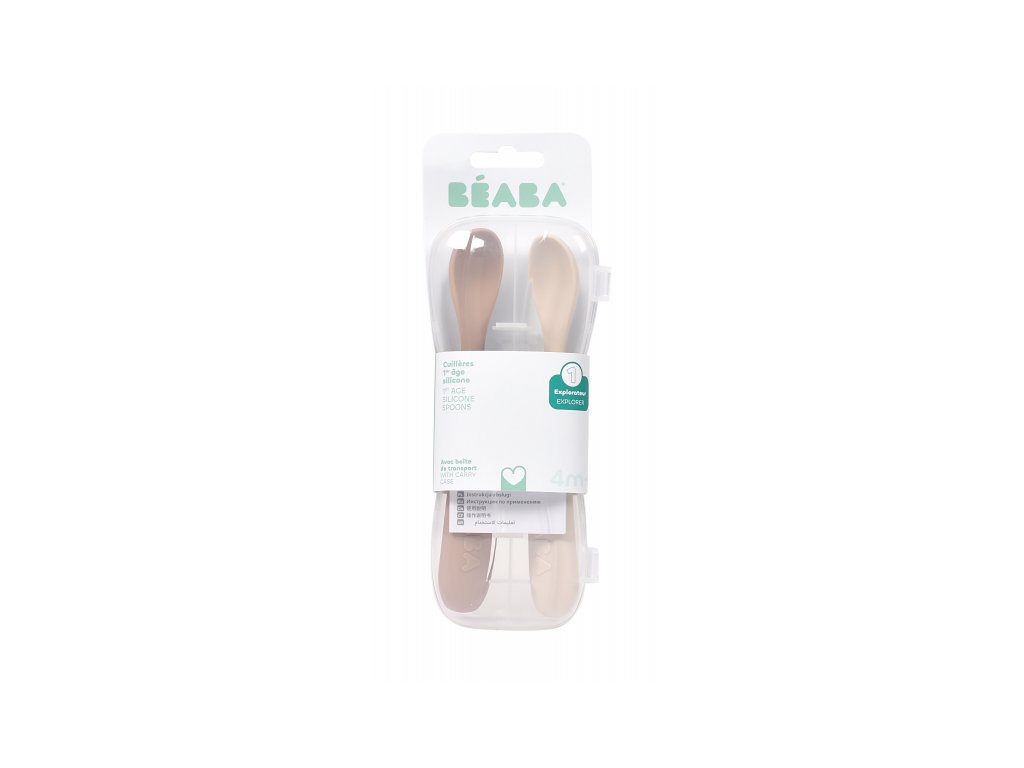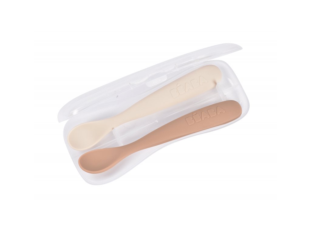 Silikónové lyžičky Beaba pre najmenších sú šetrné k citlivým detským ďasnám a navrhnuté pre hladký prechod z cumlíka na lyžičku. Dlhá rukoväť uľahčuje rodičovi naberanie z misky aj pohára bez zašpinenia rúk. Praktické puzdro umožňuje hygienické prenášanie lyžičiek napr. v prebaľovacej taške.