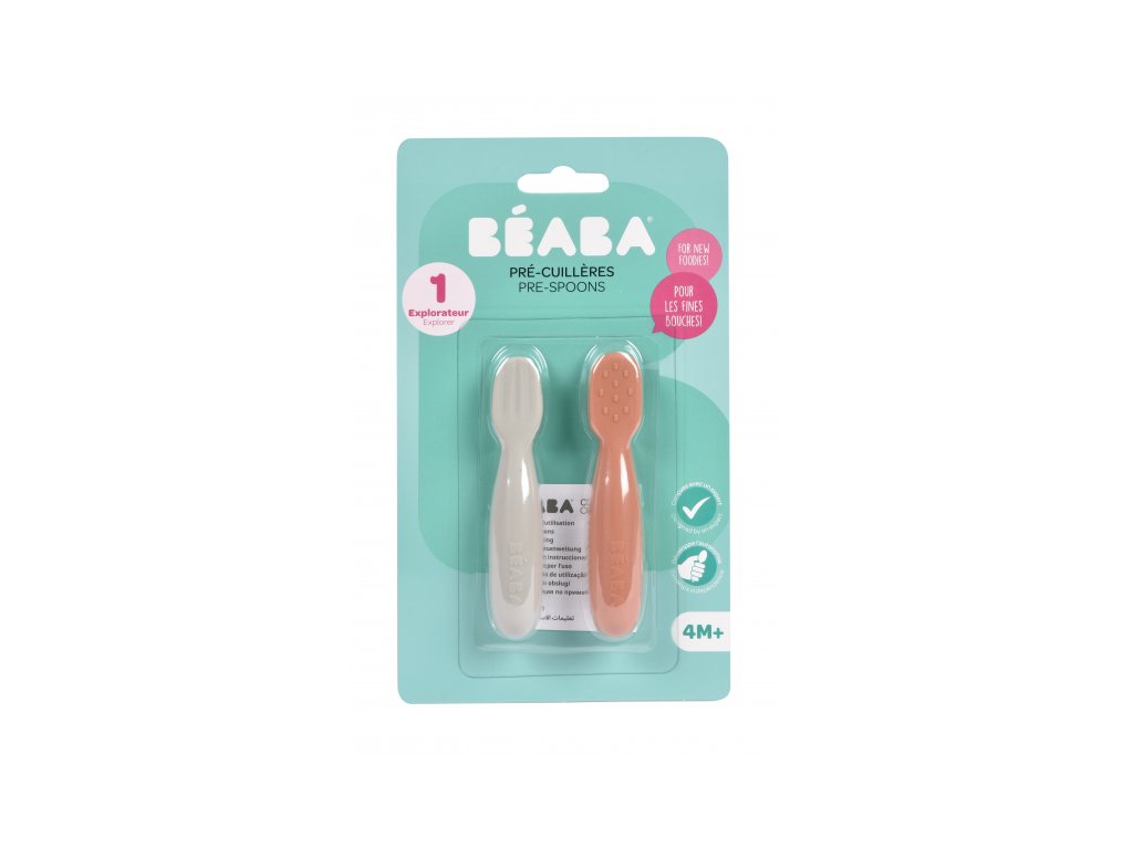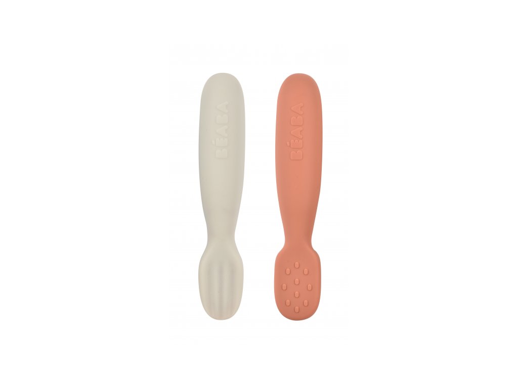 Prvé trénovacie lyžičky boli navrhnuté špeciálne pre bábätká, ktoré sa zoznamujú s prvými príkrmami. Texturované zakončenie lyžičky ponúka dve varianty pre rôzne typy príkrmov - lyžička s pozdĺžnymi vrúbkami je ideálna pre prvé hladké pyré, lyžička s jemnými výstupkami pre hrubší príkrm s malými kúskami.