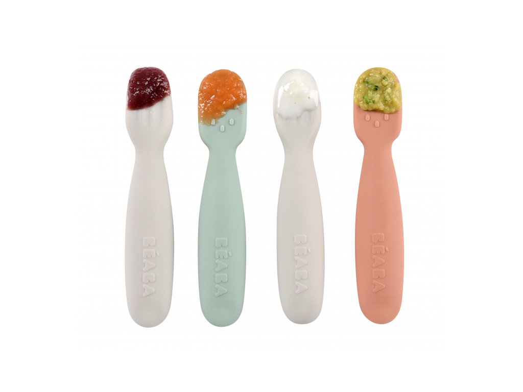 Lyžičky sú vhodné od 4 mesiacov na kŕmenie dieťaťa rodičom, od 6-8 mesiacov už dieťa môže lyžičku držať samo. Krátka, zaoblená rukoväť umožňuje dieťaťu ľahké uchopenie v dlani aj prstami. Ploché obojstranné prevedenie lyžičky zaistí, že príkrm, ktorý dieťa na lyžičku naberie, dokáže doniesť až do úst.