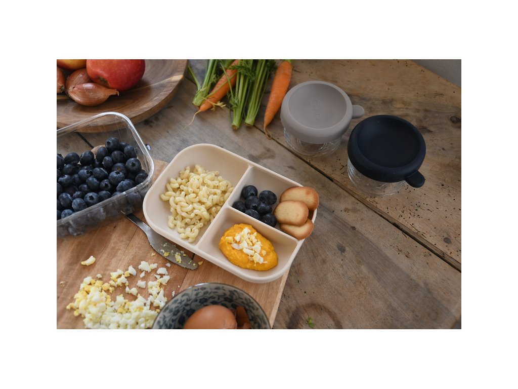 Tanier s prísavkou z vysoko kvalitného silikónu umožňuje uchytenie k stolu alebo pultu jedálenskej stoličky. Ergonomický tvar uľahčuje naberanie príkrmu. Tri priehradky umožňujú oddelené servírovanie jednotlivých súčastí detského pokrmu.