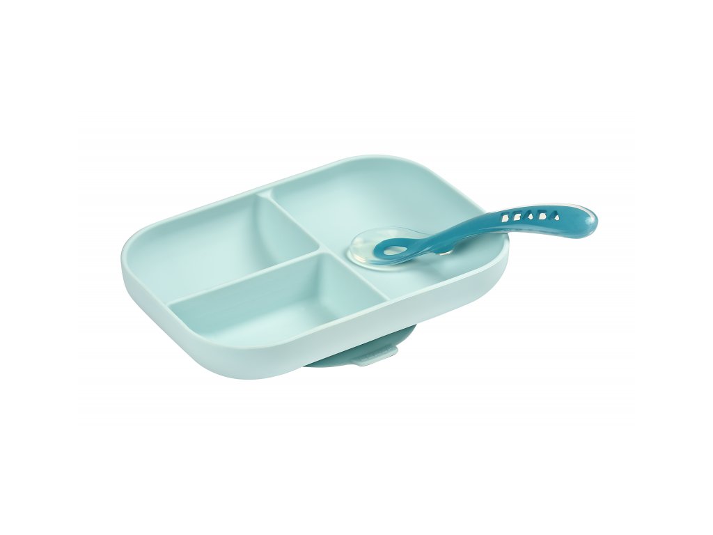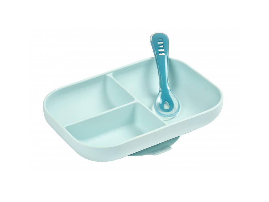Tanier s prísavkou z vysoko kvalitného silikónu umožňuje uchytenie k stolu alebo pultu jedálenskej stoličky. Ergonomický tvar uľahčuje naberanie príkrmu. Tri priehradky umožňujú oddelené servírovanie jednotlivých súčastí detského pokrmu.