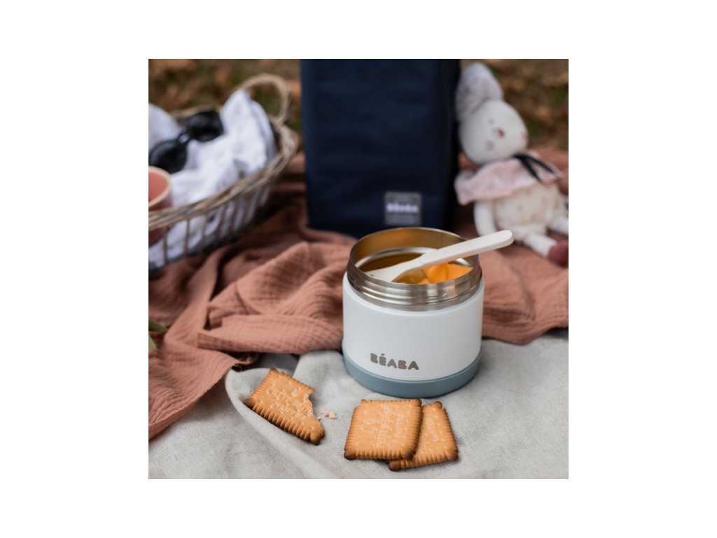Vákuová termoska Beaba vyrobená z vysoko kvalitnej dvojstennej ocele je ideálnou pomôckou pre zdravé stravovanie na cestách s vaším dieťaťom. Termoska udrží až 6 hodín jedlo teplé a až 7 hodín studené. Hermetické uzatváranie je zárukou bezpečného prenášania v taške. Široké hrdlo uľahčuje plnenie aj naberanie jedlá z termosky.