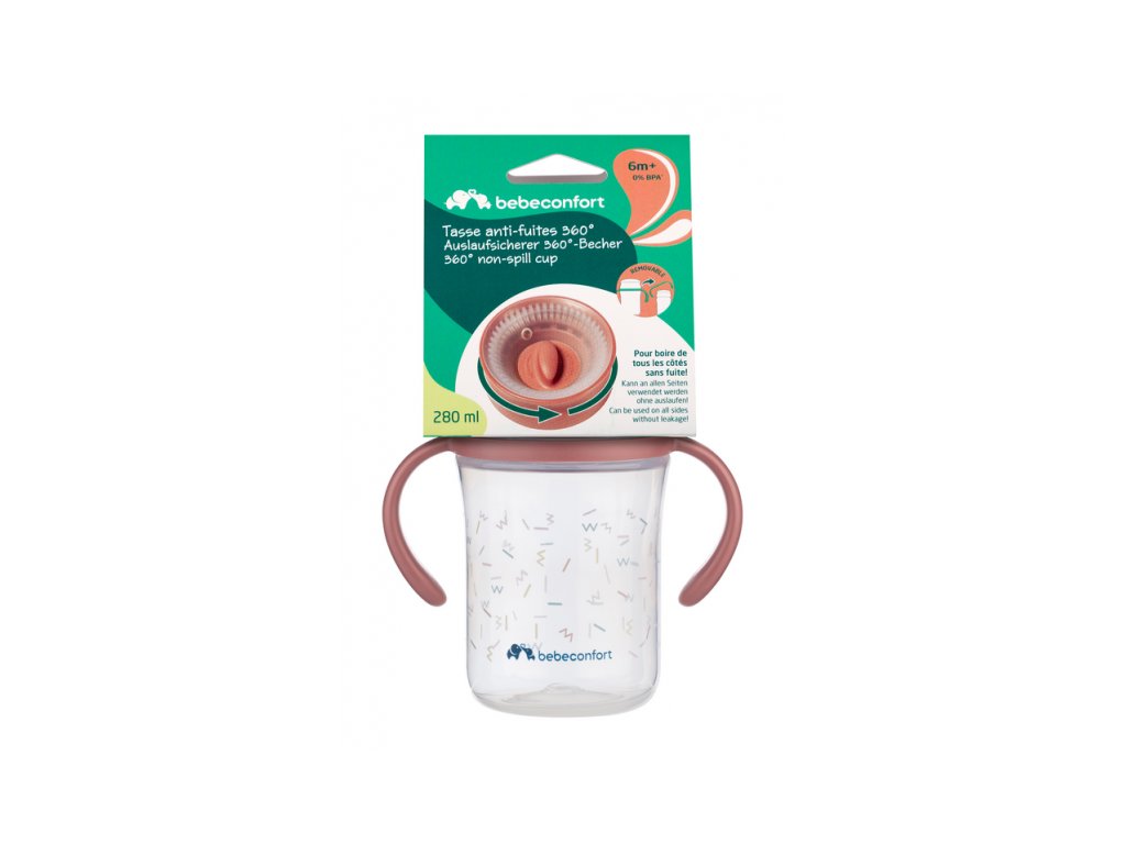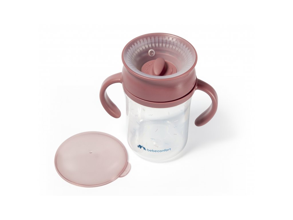 Trénovací hrnek 360° nabízí unikátní řešení, jak naučit dítě pít z hrnku bez pítka. Díky speciální membráně hrnek nevyteče při převržení. Dítě může pít z kteréhokoli místa po obvodu horní hrany hrnku. Odnímatelná držadla usnadňují dítěti držení. Víčko chrání hygienickou čistotu hrnku při přenášení.