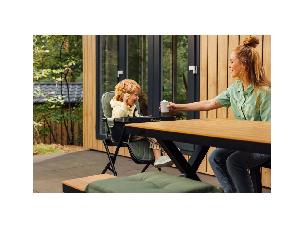 Keď stoličku práve nepoužívate, ľahko a rýchlo ju zložíte vrátane jedálenského pultu do plochého tvaru. Zloženú stoličku potom môžete postaviť kamkoľvek potrebujete, je tak ideálna aj do malého bytu a môžete ju využiť aj na cestách s vašim dieťaťom.