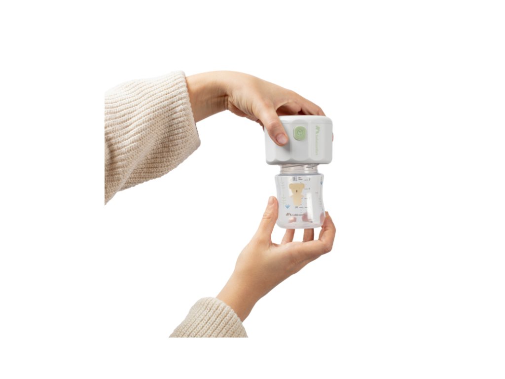 Súčasťou balenia je ochranné veko, USB-C nabíjací kábel, náhradné silikónové tesnenie, 50mm adaptér na fľašu (NUK), 60mm adaptér na fľašu (Tommee Tippee), 53mm adaptér na fľašu (MAM).