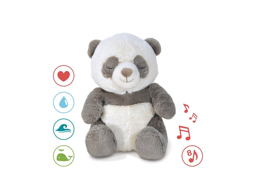 Uspávačik v podobe neodolateľného plyšového medvedíka pandy s hudbou a relaxačnými zvukmi pomôže vášmu dieťaťu upokojiť sa a ľahšie zaspať. Hračka ponúka 4 melódie a 4 ukľudňujúce prírodné zvuky (dážď, tlkot srdca, vlny, veľrybia pieseň). Inteligentný senzor zvuku s nastaviteľnou citlivosťou aktivuje prehrávanie melódie, keď dieťa začne plakať.
