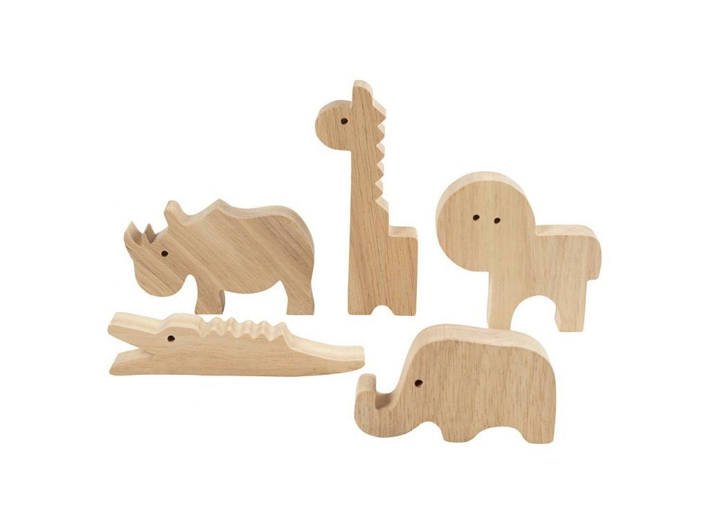 Originálna sada drevených safari zvieratiek na dozdobenie a hranie. Roztomilé figúrky zo masívneho dreva si deti môžu vyzdobiť podľa vlastnej fantázie – farbami, fixkami alebo kreatívnymi hmotami. Zvieratká sú dosť pevné na hranie a zároveň vyzerajú skvele ako dekorácia v detskej izbe.