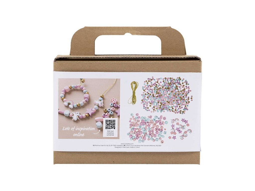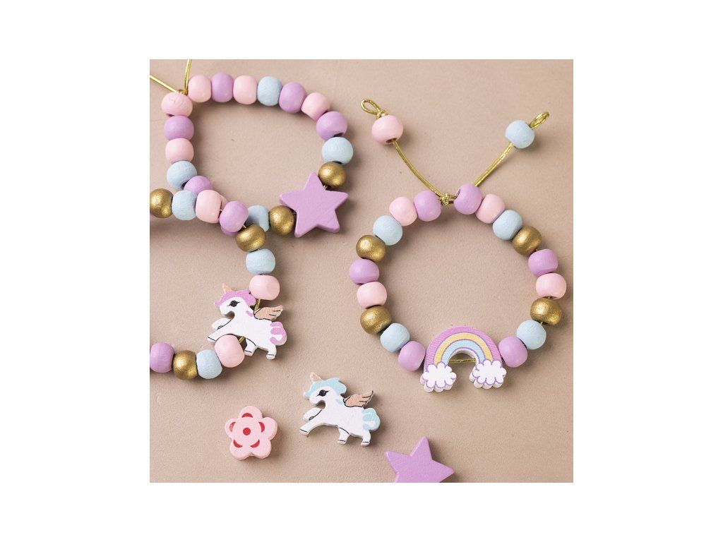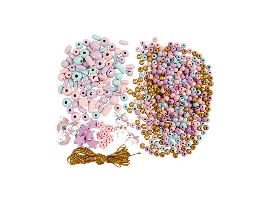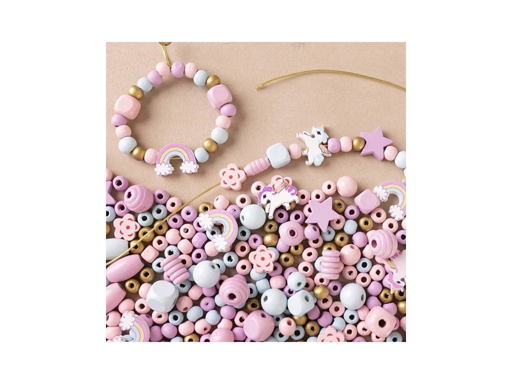 Originálna kreatívna súprava na výrobu korálkových šperkov. Navliekaním drevených korálikov si deti môžu vytvoriť si vlastné šperky v krásnych pastelových farbách podľa svojej nálady a štýlu. Ideálne tvorenie pre malých kreatívcov, ktorí si chcú vyrobiť náramky, náhrdelníky alebo napríklad retiazku na členok.
