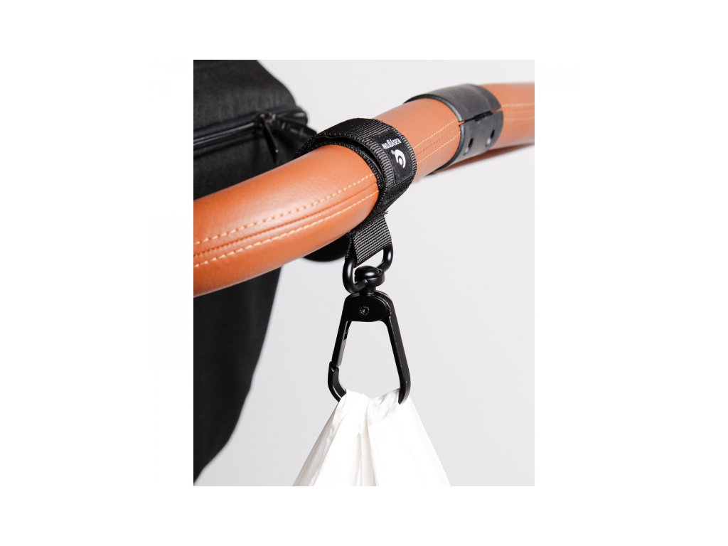 Velký a pevný háček na kočárek je praktický doplněk pro zavěšení tašek, batohů i nákupních tašek. Díky dlouhému suchému zipu drží na rukojeti kočárku stabilně a bezpečně.