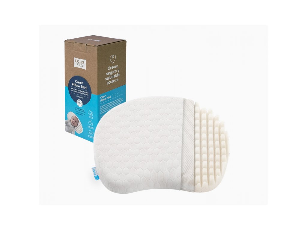 Detský mini vankúš Ecus Kids Care pomáha predchádzať splošteniu hlavičky (plagiocefálii) u dojčiat.Znižuje tlak o 40% viac ako iné vankúše a nemá stredový otvor, takže chráni dieťa bez ohľadu na polohu jeho hlavy.