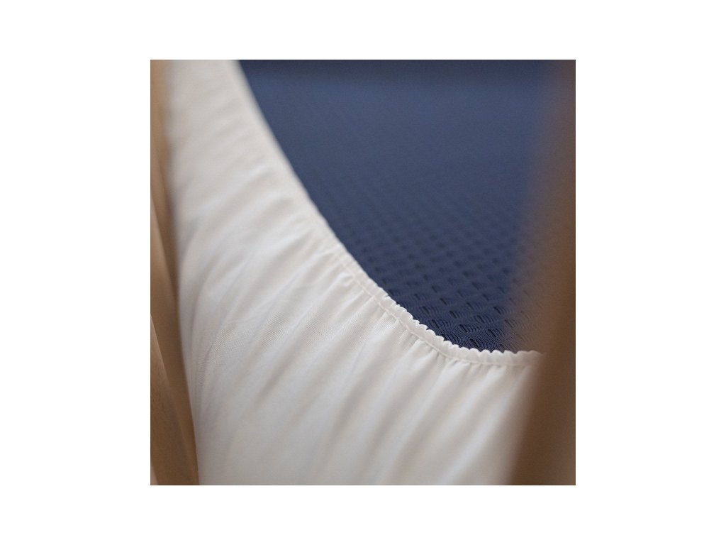 Plachta je vyrobená z prírodného vlákna Tencel, ktoré je mimoriadne jemné, šetrné k pokožke a dokáže regulovať telesnú teplotu. Vďaka schopnosti rýchlo absorbovať a uvoľňovať vlhkosť pomáha udržovať dieťa v suchu a predchádza poteniu či podráždeniu pokožky. Vrchná vrstva plachty je opatrená tenkou, elastickou polyuretánovou membránou (PU), ktorá zaisťuje spoľahlivú vodeodolnosť a chráni matrac pred presakovaním, škvrnami, prachom aj roztočmi. Napínacia guma po obvode umožňuje ľahké natiahnutie na matrac.
