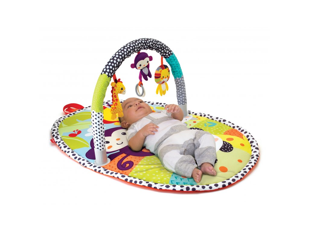 Hracia deka s krásnymi ilustráciami zvieratiek zo ZOO. Zavesené hračky na hrazde zabavia a nabádajú k skúmaniu bábätko ležiace na chrbte.