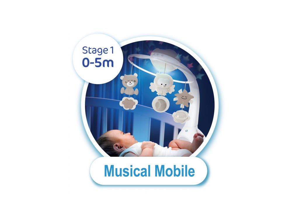 Svetelný projektor premieta na stenu či strop hviezdičky a jemne tak osvieti detskú izbu. Spolu s upokojujúcou melódiou pomôže vášmu dieťaťu v pokoji zaspávať.