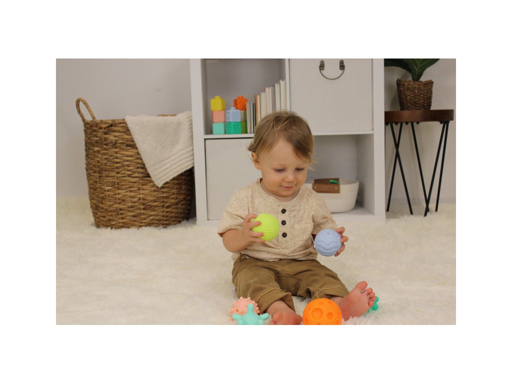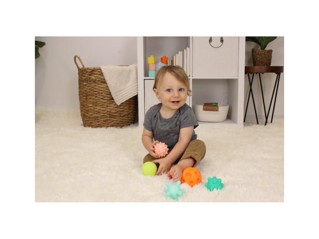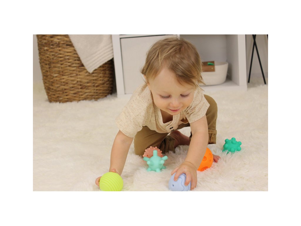 Měkké barevné míčky různých velikostí s různými povrchy a výstupky jsou vhodné pro hru i relaxaci s vaším dítětem. Pomáhají rozvíjet hmat i další smysly dítěte.