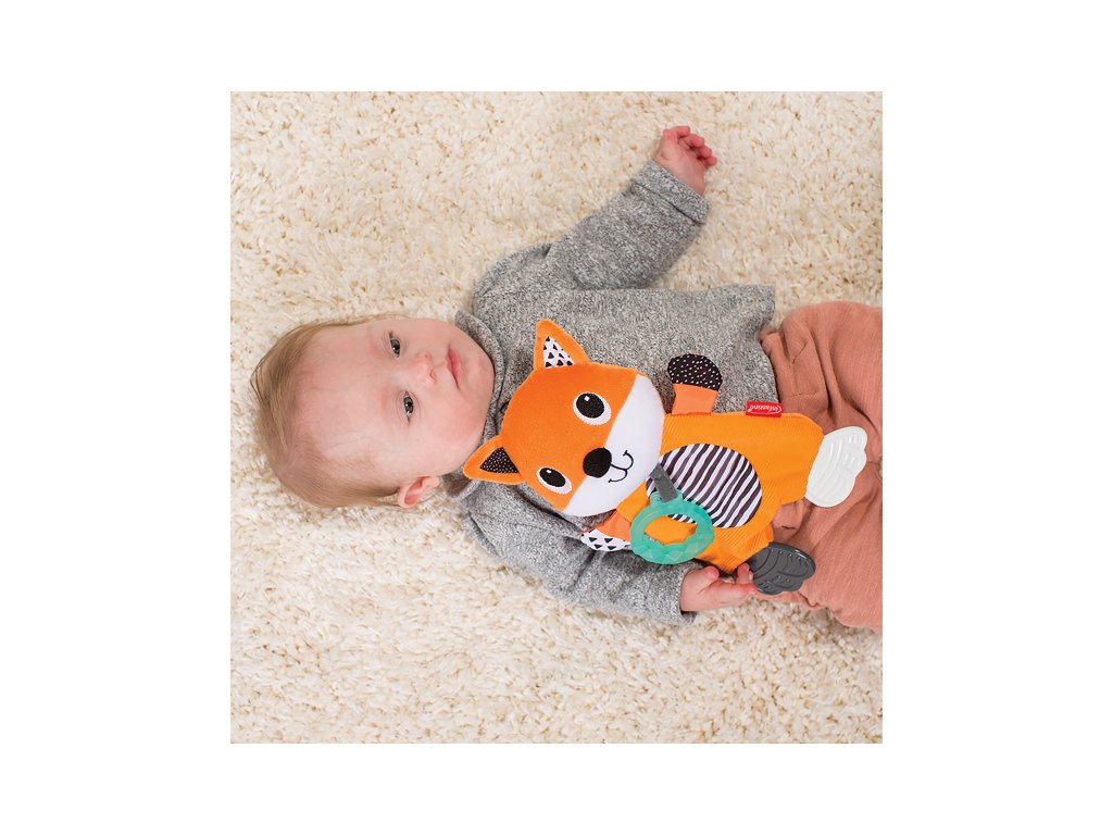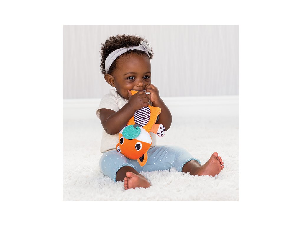 Mazliaca hračka s hryzátkami je vhodná ako prvá hračka dieťaťa. Rôznorodé textúry aj šuštiace časti lákajú dieťa k skúmaniu rukami aj ústami. Hryzátka dieťaťu uľavia pri prerezávaní prvých zúbkov.