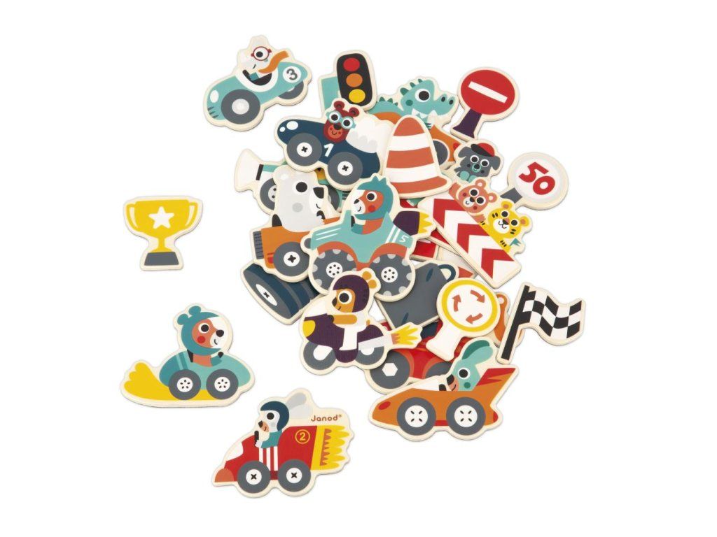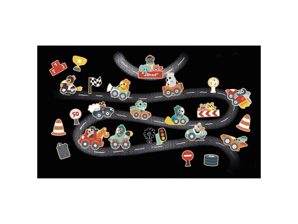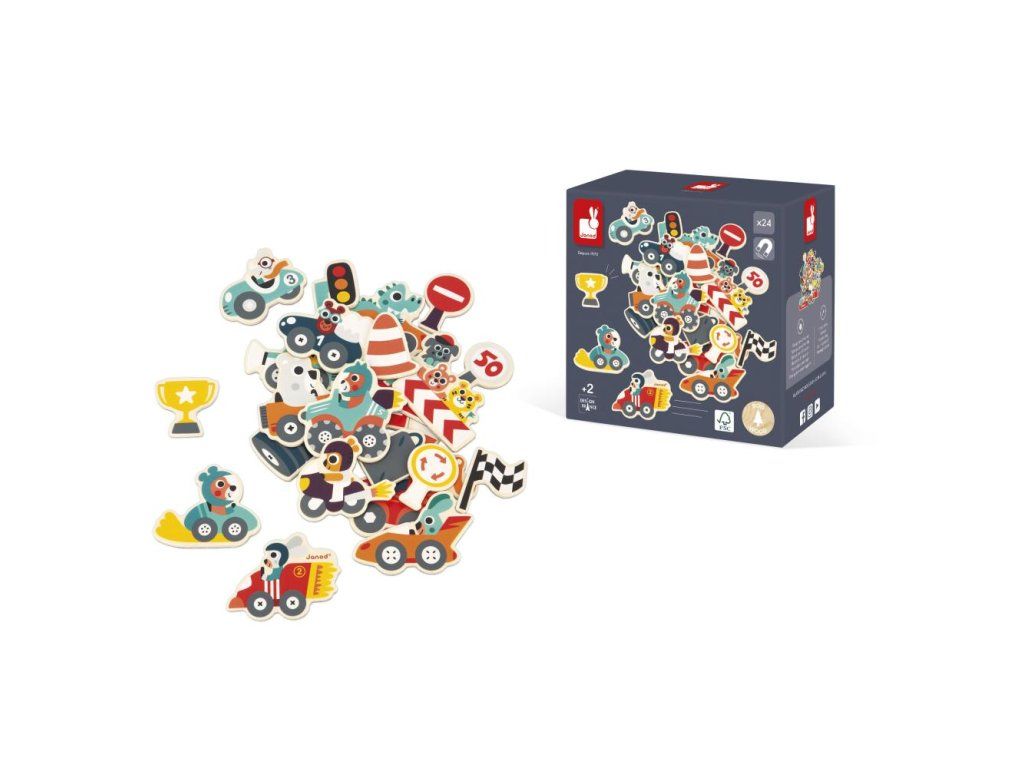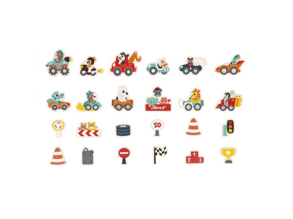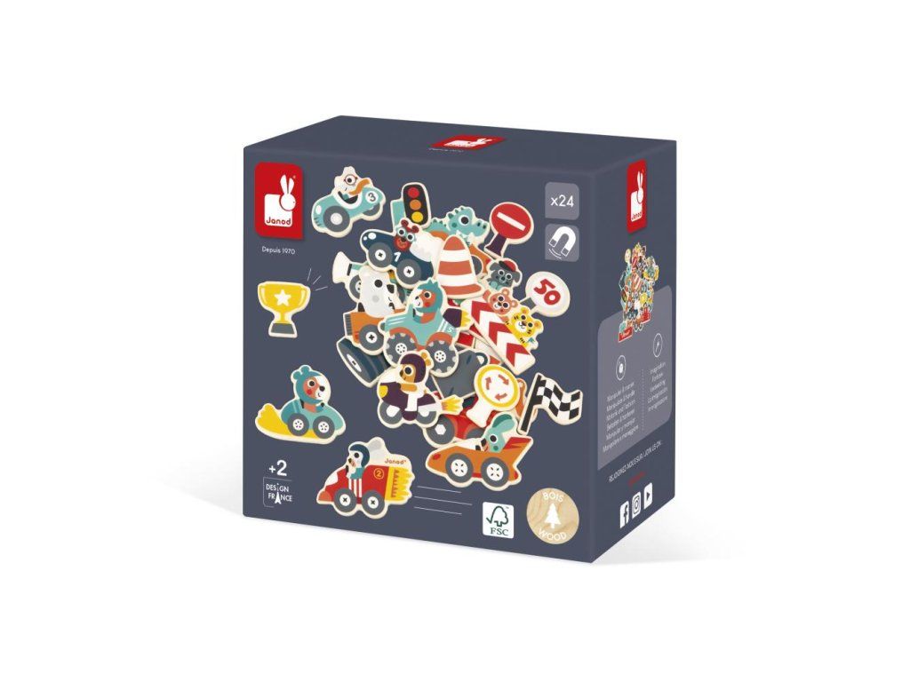 Usaďte se! Malá auta se blíží! Vytvořme bláznivý závod s různými vozidly. Kolize? Nepanikařte, odtahové vozidlo je připraveno pomoci. Dostaňte se do cíle předat trofeje. Tato sada se skládá z 24 dřevěných magnetů, které se drží magnetických desek, chladniček nebo jakéhokoli jiného magnetického povrchu. Vaše dítě může při zábavě rozvíjet vaši představivost a dovednosti. Dřevěná magnetická hračka FSCTM. Pro děti od 2 let.Dodatočné parametre