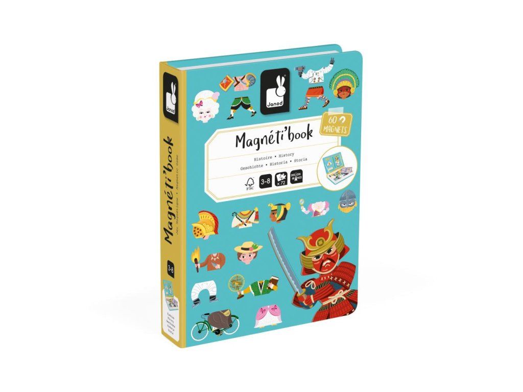 Cestujte v čase s Magneti'book History! Táto magnetická hračka sa skladá zo 60 magnetov, 12 kariet a vysvetľujúceho letáku. Umožní vášmu dieťaťu objavovať rôzne epochy: od kromaňonského muža až po prvé kroky človeka na Mesiaci! Každé obdobie je spojené aj s umeleckým alebo architektonickým symbolom. Tieto diela svedčia o spôsobe života a evolúcii kultúr. Okrem vzdelávacieho aspektu vám kniha History Magneti'book tiež umožňuje pomiešať magnetky, a teda aj éry. Ideálne na vytváranie zábavných postáv! Magnetická hračka vyrobená z kartónu FSCTM. Edukačná hračka pre deti od 3 rokov.Dodatočné parametre