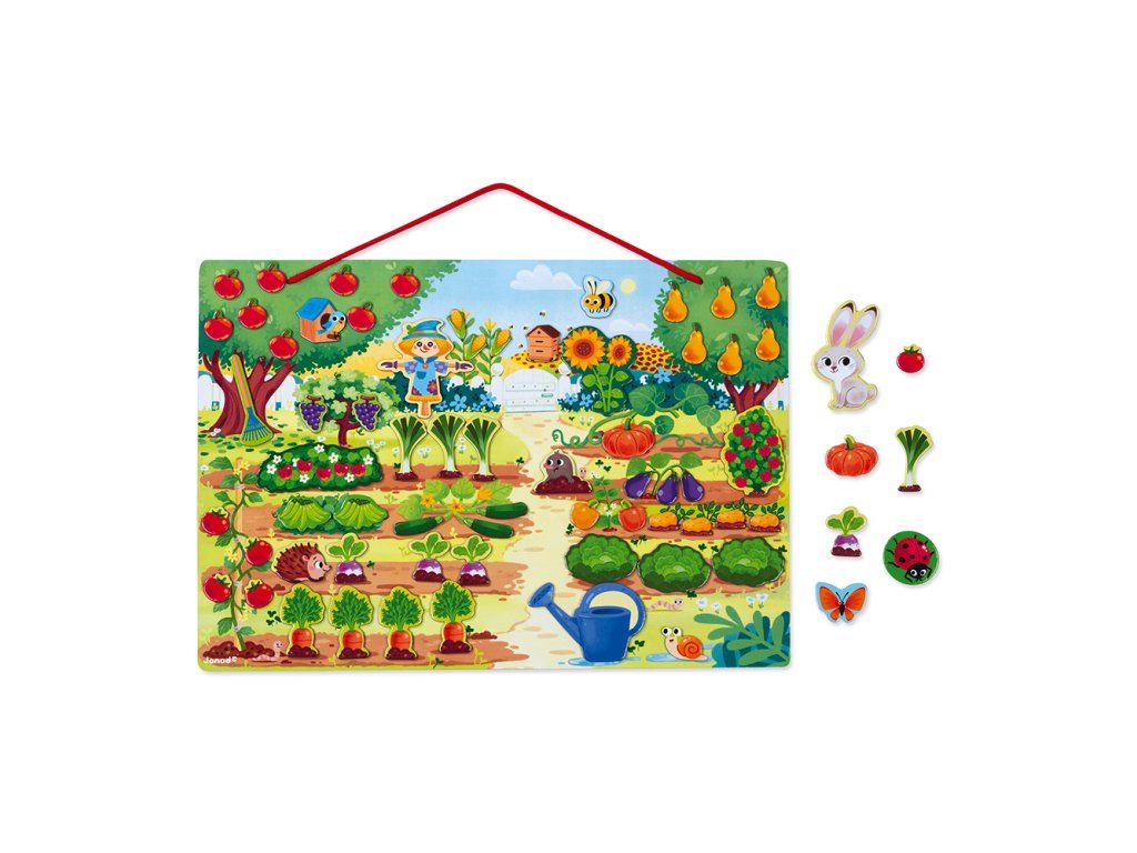 Magnetická hračka & nbsp; moje zahrada, rosteme a rostlina a nbsp; janad 70 kusů magnetů. Mohou se naučit hračce, pěstují svou zeleninu a ovoce v zahradě. Mohou zalévat zahradu tak, aby zelenina rostla dobře a dokonce i kopání, strašák musí být svědomitě umístěn, aby vyděsil všechny škůdce. V balíčku také najdete zvířecí magnety, se kterými mohou děti hrát také a zjistit, jaké zvíře se zvíře líbí ze zahrady k jídlu. >: 42 x 0,7 x 29,7 cm Materiál: dřevo a lepenkaDodatočné parametre