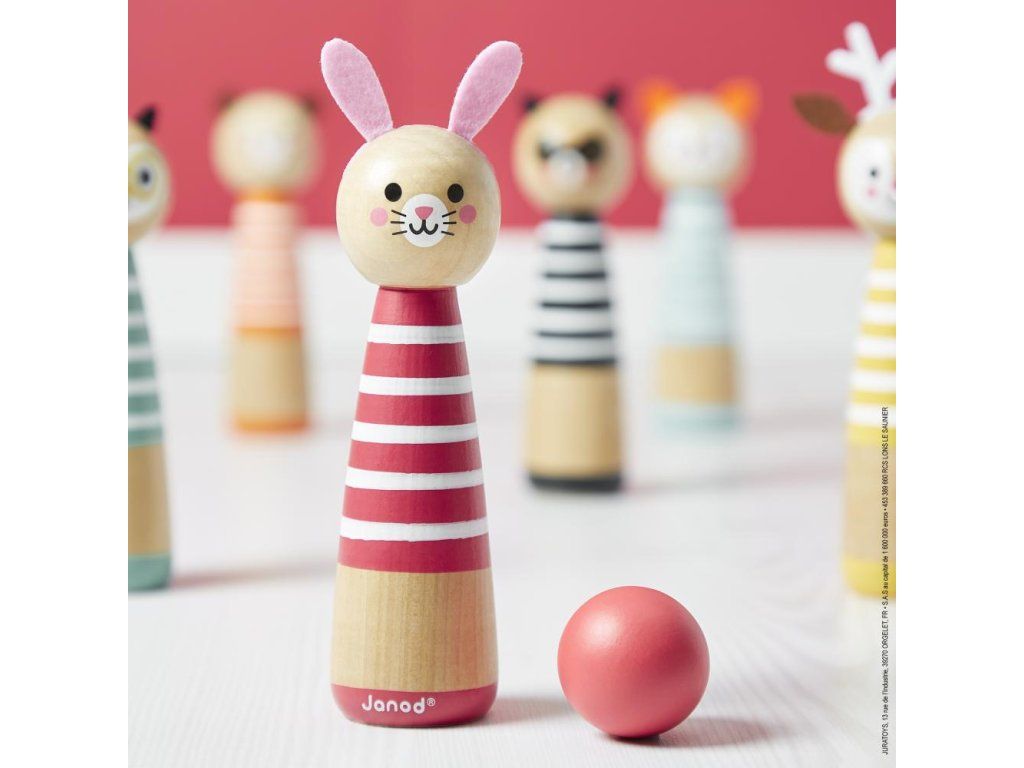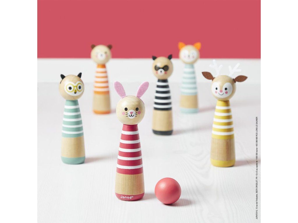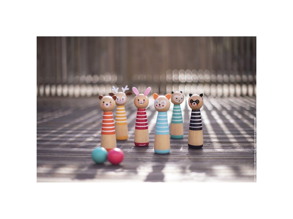 Fantastická bowlingová hra, kterou si můžete vzít kdekoli v praktickém balíčku. Hra je ideální pro rozvoj jemných motorických dovedností a koncentrace dítěte. Hra obsahuje 6 dřevěných kuželů se zvířaty motiv a 2 koule. 7 cmDodatočné parametre