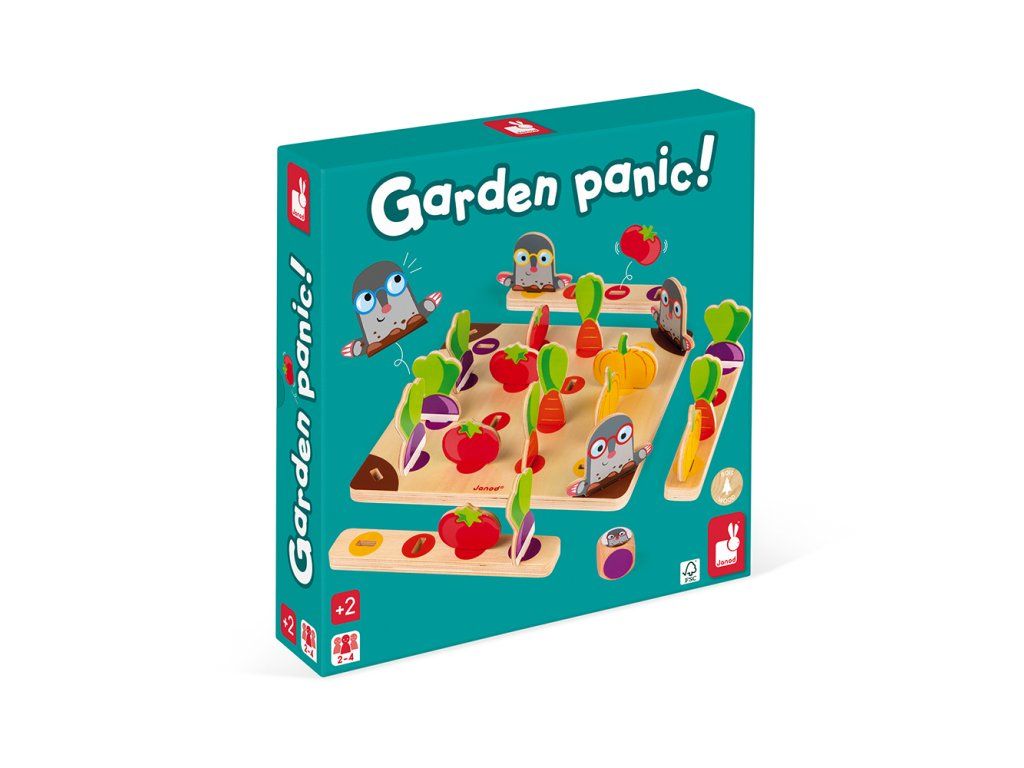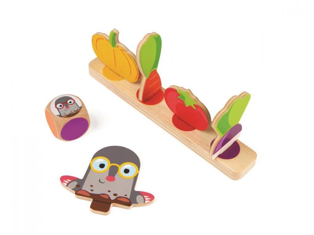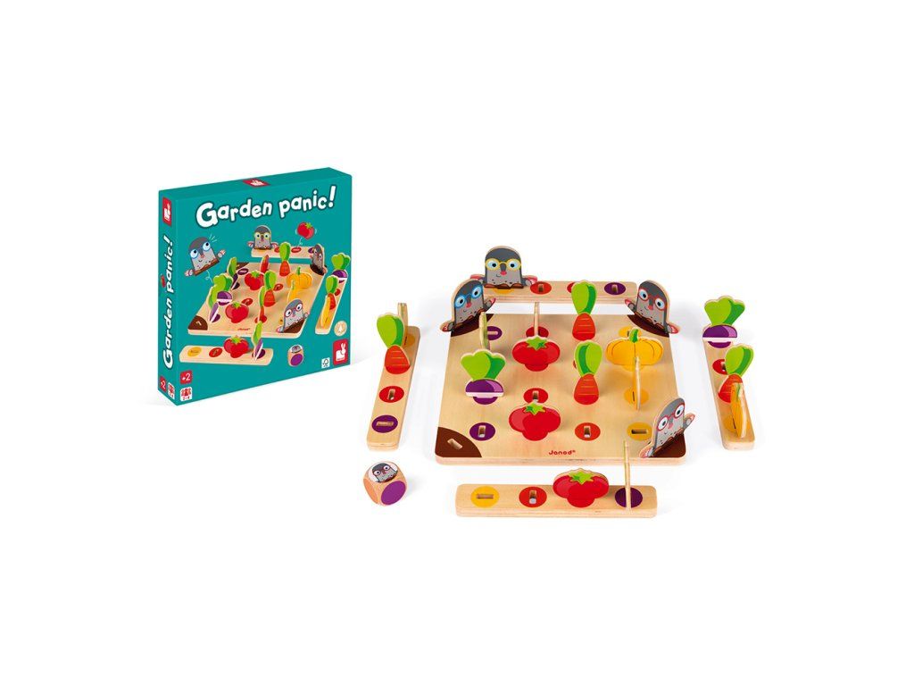 Sociální hra pro děti Janoda pro rychlost a pozornost je určena pro děti ve věku 3-6 let pro 2-4 hráče. Cílem hry je naplnit koš spíše čtyřmi druhy zeleniny než jinými spoluhráči. Buďte první, ale musíte se pokusit vyhnout krtkům v zahradě! Sociální hra pro děti pro rychlost a pozornost. Hra může být použita v dřívějším věku k učení barev (třídění do sad podle barvy). Janodova sociální hra ke zlepšení zaměření pro děti z 3 let. Hra se vyvíjí: Speed Pozor a koncentrace Strategické myšleníDodatočné parametre