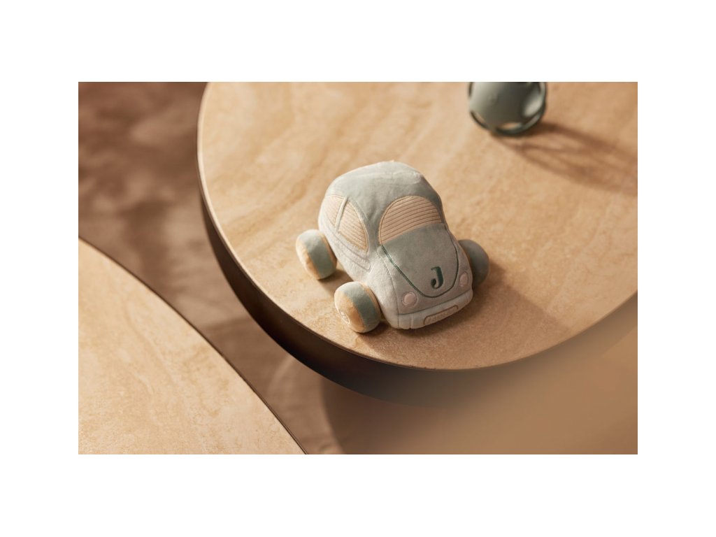 Měkké plyšové autíčko je díky svému provedení snadno uchopitelné malými dětskými ručičkami. Autíčko při pohybu jemně cinká, klíček šustí. Zvuky i různorodé textury lákají dítě ke zkoumání,