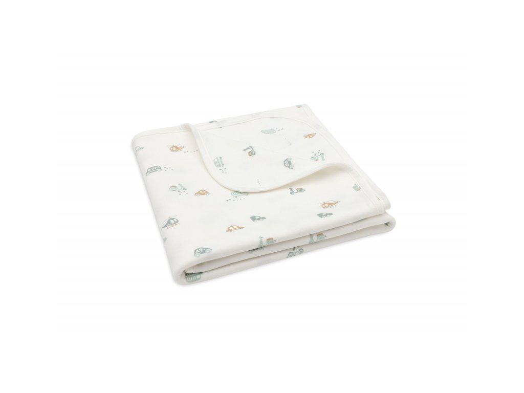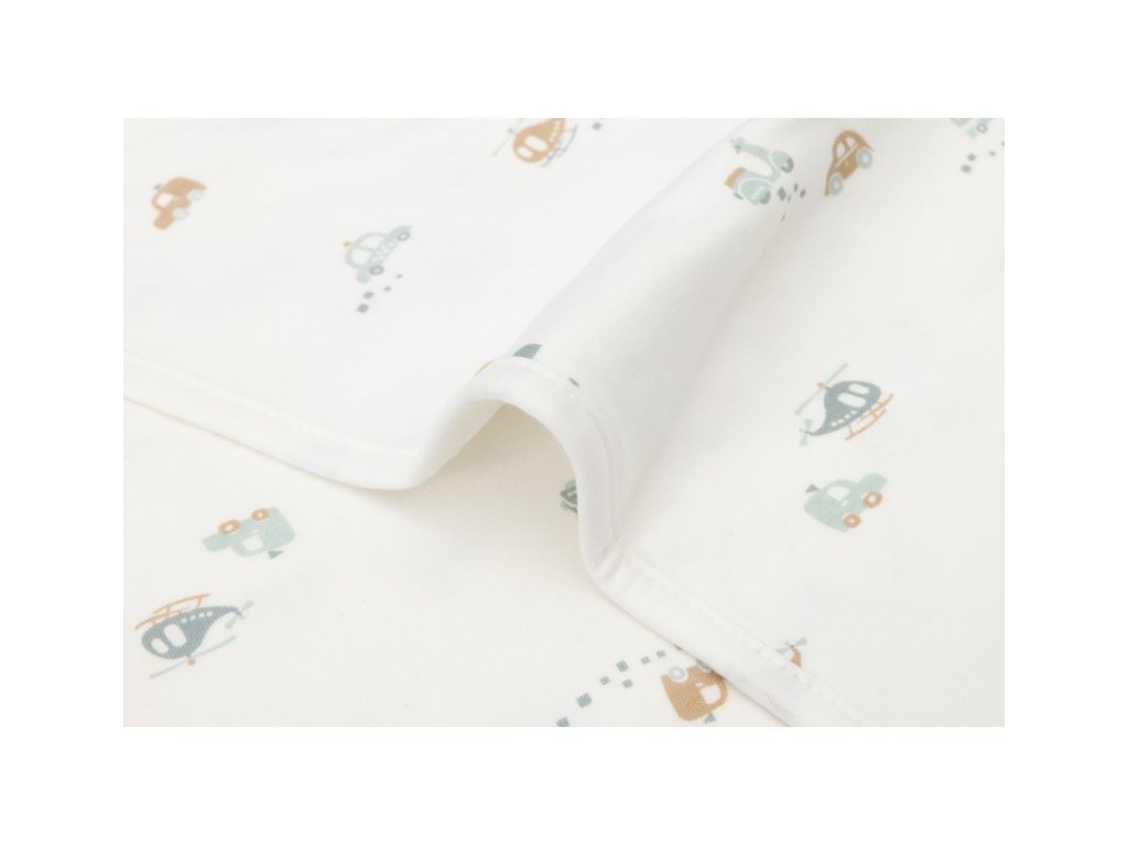 Měkká bavlněná deka s krásným potiskem dopravních prostředků je ideální pro přikrytí miminka v kočárku, kolébce či košíku.