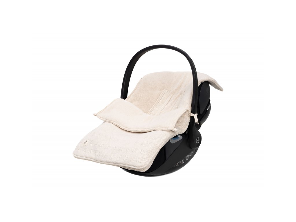 Štýlový pletený fusak do autosedačky má vonkajšiu časť z mäkkej pleteniny a vnútornú stranu z jemného fleecu pre maximálne pohodlie a tepelný komfort dieťaťa v autosedačke. Otvory v zadnej časti fusaku umožňujú pretiahnutie pásov autosedačky, fusak tak môžete mať v autosedačke pripravený a po jeho rozopnutí už stačí len dieťa do autosedačky vložiť a pripútať. Podľa teploty v aute alebo vonku fusak s pomocou zipsov zapnete alebo naopak necháte rozopnutý, aby bol zaistený tepelný komfort dieťaťa. Zapínanie na patentky v hornej časti fusaku umožňuje vytvoriť kapucňu na ochranu hlavičky dieťaťa napr. pri prenášaní dieťaťa v autosedačke vonku.