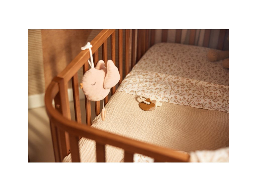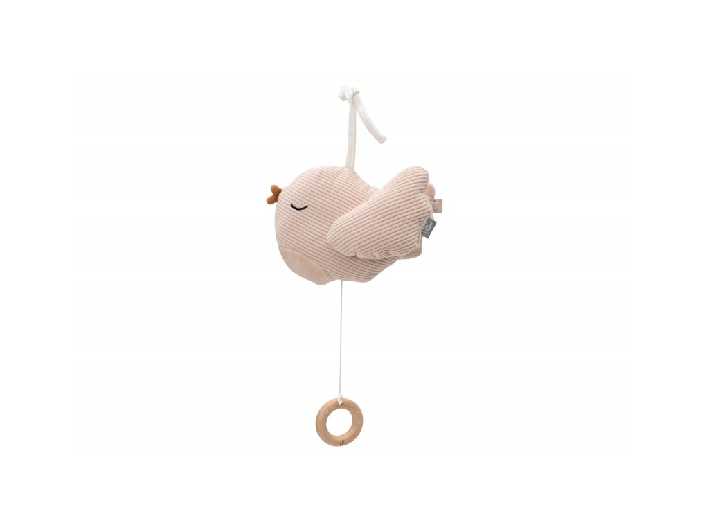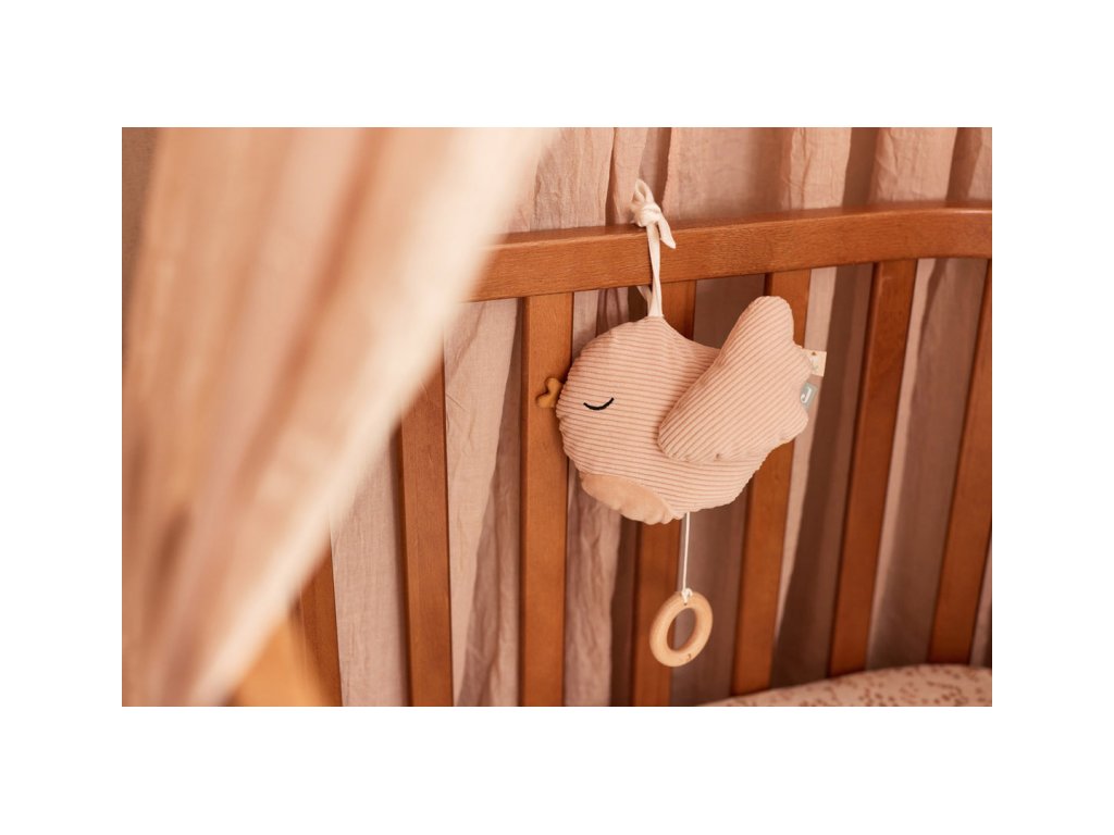 Něžný závěsný ptáček hraje po natažení za kroužek krásnou ukolébavku Franze Schuberta. Hračku s pomocí textilního úchytu snadno připevníte na postýlku, autosedačku, kočárek apod.