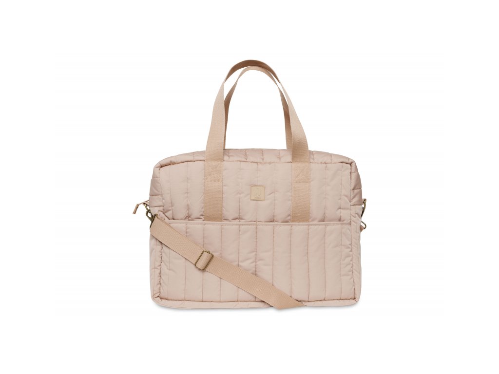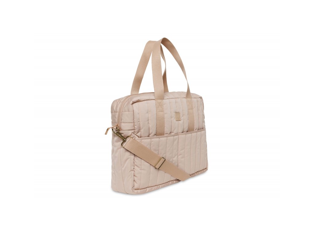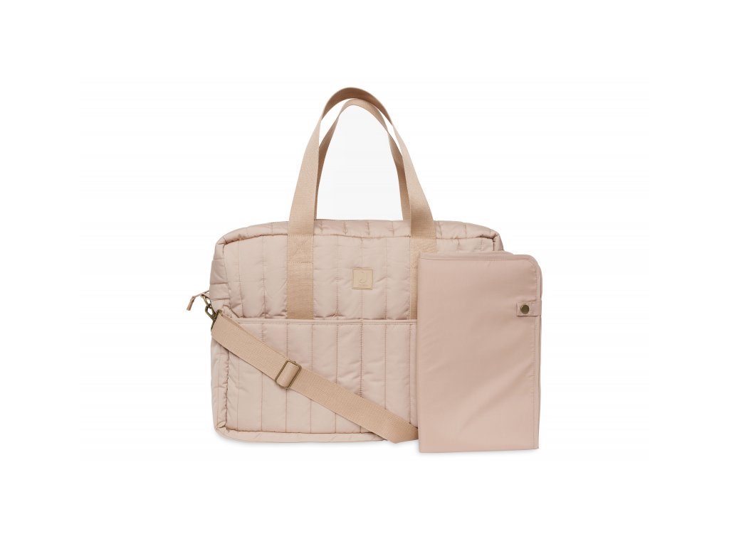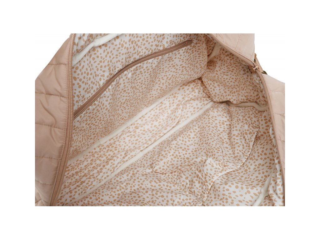 Prebaľovacia taška z príjemného prešívaného materiálu s výplňou s originálnou bodkovanou podšívkou ponúka množstvo vnútorných aj vonkajších vreciek pre prehľadné usporiadanie všetkého potrebného na prechádzkach a výletoch s vašim dieťaťom. Súčasťou tašky je aj praktická prebaľovacia podložka. Ramenný popruh aj držadlá umožňujú nosenie cez rameno, v ruke aj zavesenie na rukoväť kočíka. Taška sa uzatvára na zips.
