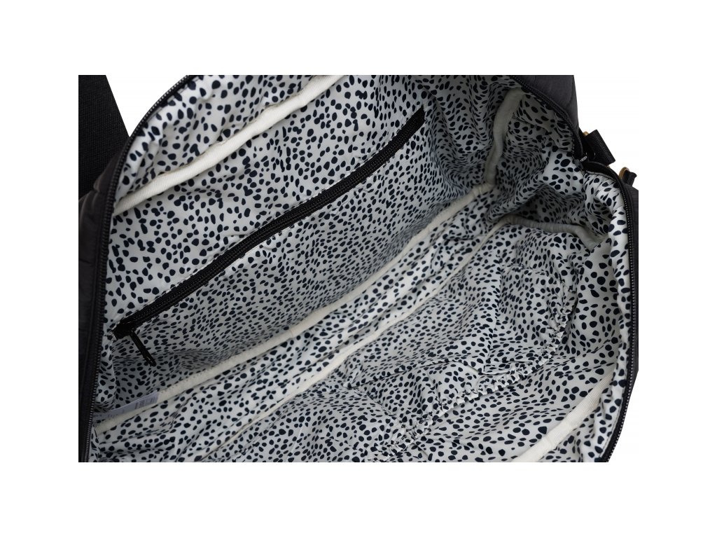 Přebalovací taška z příjemného prošívaného materiálu s výplní a s originální puntíkovanou podšívkou nabízí množství vnitřních i vnějších kapes pro přehledné uspořádání všeho potřebného na procházkách a výletech s vaším dítětem. Součástí tašky je i praktická přebalovací podložka. Ramenní popruh i držadla umožňují nošení přes rameno, v ruce i zavěšení na rukojeť kočárku. Taška se uzavírá na zip.