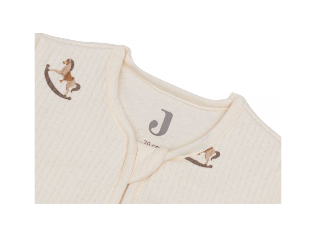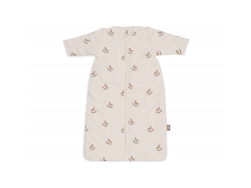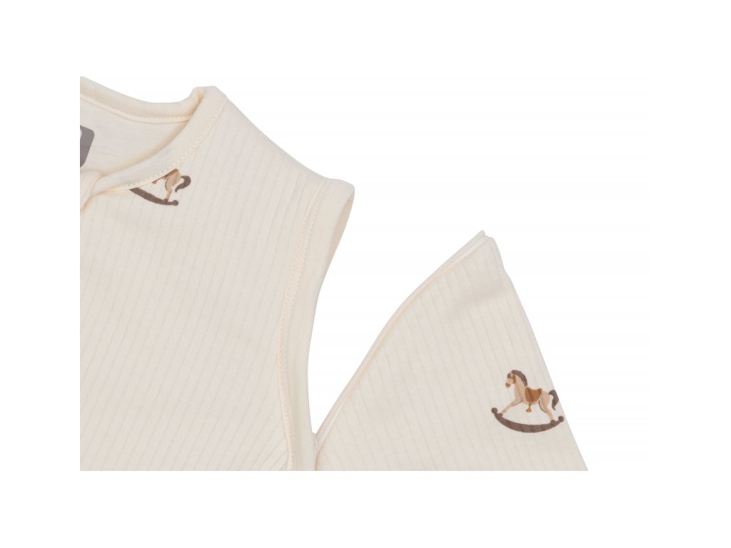 Praktický spací vak s oddeliteľnými rukávmi ponúka variabilitu pri použití podľa počasia a teploty v miestnosti. Vďaka jemnej výplni je vhodný na použitie namiesto perinky. Spací vak zaistí, že sa dieťa v noci neodkope a bude tak po celú dobu spánku v pohodlí a teple bez rizika prechladnutia. Kryté zipsy v prieramkoch umožňujú ľahké oddelenie rukávov, pokiaľ chcete spací vak používať v teplejšom prostredí bez rukávov. Zips na prednej strane umožňuje ľahké vloženie dieťaťa do spacieho vaku a prebaľovanie počas spania.
