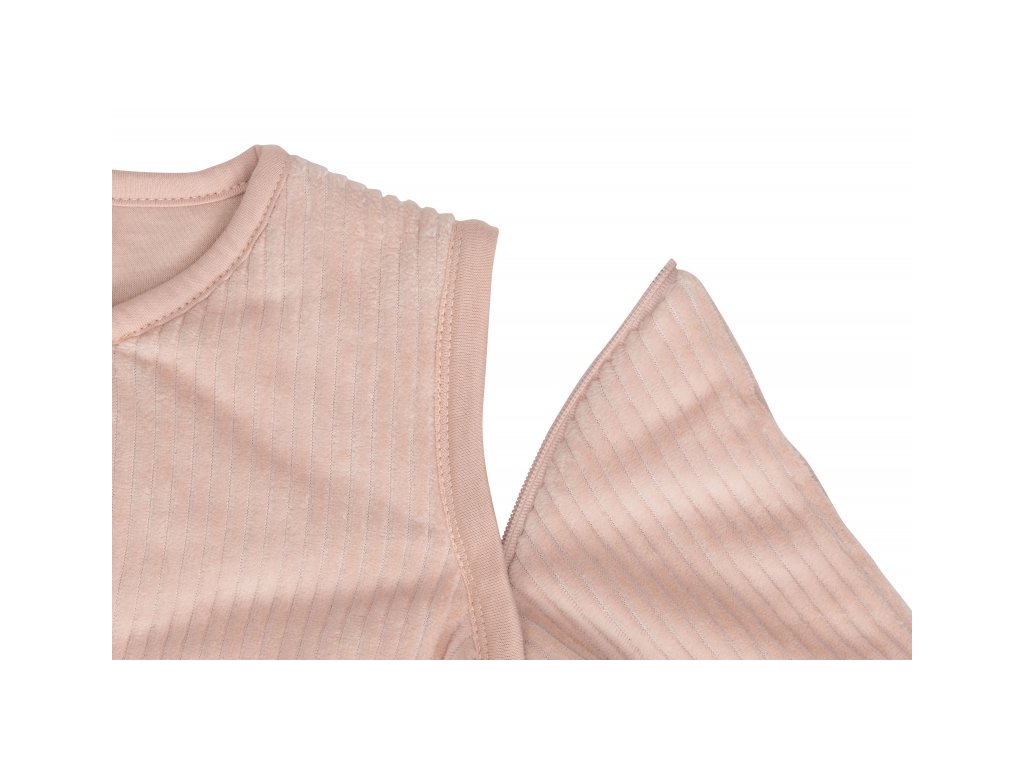 Praktický spací vak s oddeliteľnými rukávmi ponúka variabilitu pri použití podľa počasia a teploty v miestnosti. Vďaka jemnej výplni je vhodný na použitie namiesto perinky. Spací vak zaistí, že sa dieťa v noci neodkope a bude tak po celú dobu spánku v pohodlí a teple bez rizika prechladnutia. Kryté zipsy v prieramkoch umožňujú ľahké oddelenie rukávov, pokiaľ chcete spací vak používať v teplejšom prostredí bez rukávov. Zips na prednej strane umožňuje ľahké vloženie dieťaťa do spacieho vaku a prebaľovanie počas spania.